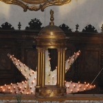 A mezzanotte in punto tutti i fedeli presenti, mentre ogni luce si spegneva improvvisamente, hanno visto salire, da dietro l’altare, quella meravigliosa stella splendente che, inesorabilmente saliva sempre più su accompagnata dal canto solenne del “Gloria”! Fino a quando, fermandosi, raggiungeva l’apice dell’abside. I fedeli, che fino a quel momento avevano tutti trattenuto il fiato, rimanevano, per alcuni istanti, increduli, a bocca aperta e a occhi sbarrati! Ed ecco che, terminata la manovra, si avvertiva distintamente un sommesso, sottile, comune, irresistibile e contemporaneo “ooooh!”.
