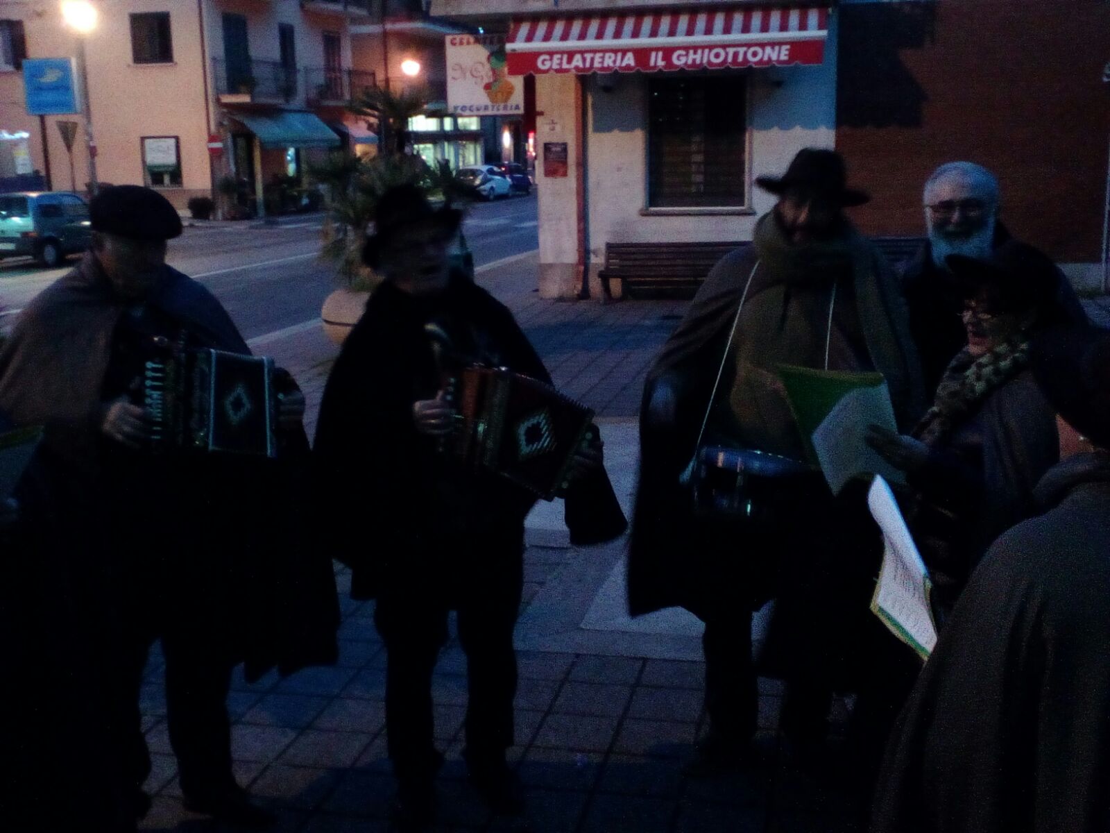 Un’antica tradizione quella di coloro che cantando, passavano per la questua per affrontare il duro periodo invernale. La presenza, oggi folcloristica, dei cantori ha rievocato in alcuni ricordi da bambino quando questi questuanti riempivano la loro cesta per lo più di uova, generosamente date dai contadini essendo ciò che avevano più a disposizione, più raramente infatti di un salame, e a volte portavano come trofeo una volpe, segno dell’utilità del loro passaggio dato che le volpi erano nemiche dei contadini uccidendo le loro galline, e ricevere cosi maggiori segni di gratitudine concreta nel loro cesto, ricambiando con il canto.