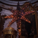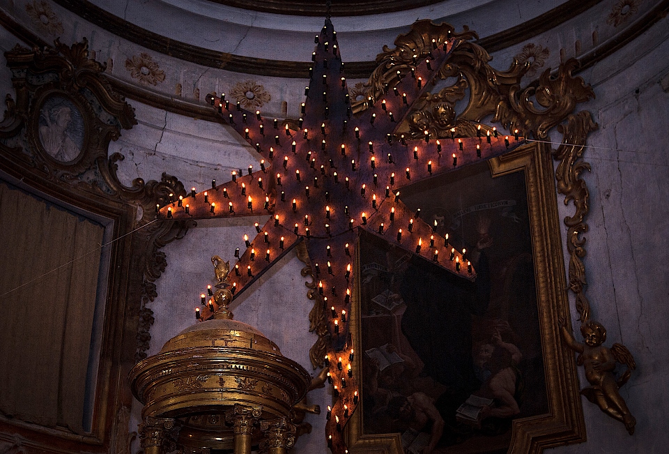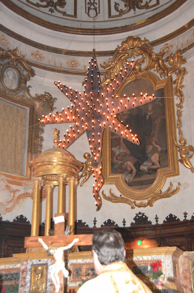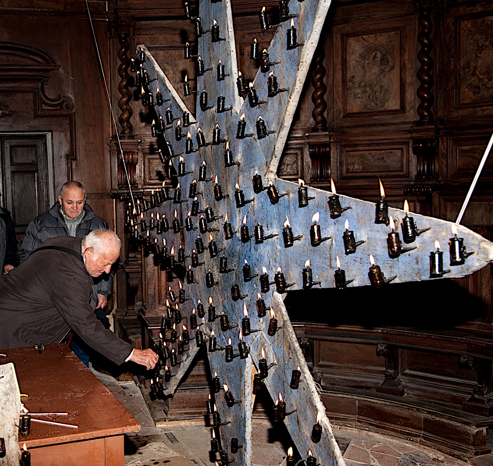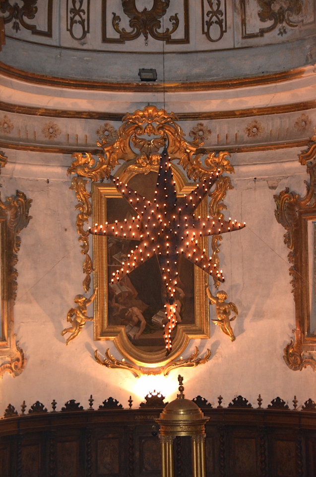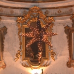 MONTELPARO – Nella chiesa di Sant’Agostino di Montelparo, come da tradizione trecentennale , la Stella Cometa è salita di nuovo altissima e sfavillante, con i suoi 185 lumini a olio appena accesi, dietro all’altare maggiore!