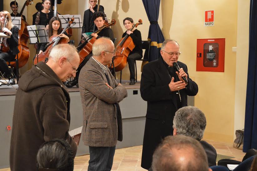 Il Presidente dei Musei Sistini Mons. Vincenzo Catani ha posto invece l’attenzione sul luogo, quello che infatti oggi è chiamato Teatro Comunale in realtà era l’antica cattedrale di S. Maria ad Collem. Accolto con grande calore il Vescovo emerito Mons. Gervasio Gestori ha dato un breve augurio di buon anno mettendo in relazione la bellezza delle opere d’arte presenti nei musei testimoni di bellezza e fede e la musica capace di far entrare in sintonia due mondi che parlano in maniera privilegiata al cuore dell’uomo.