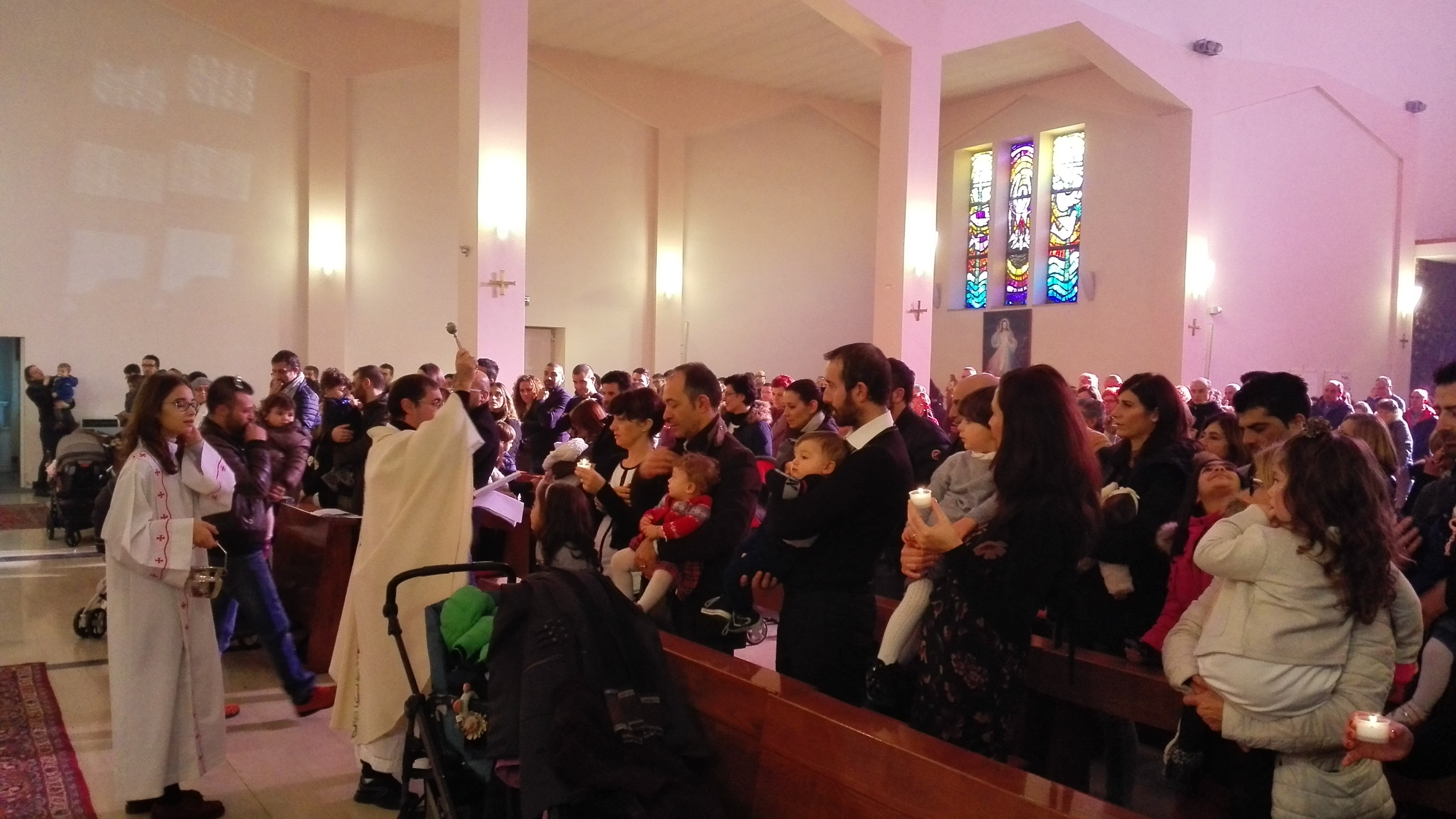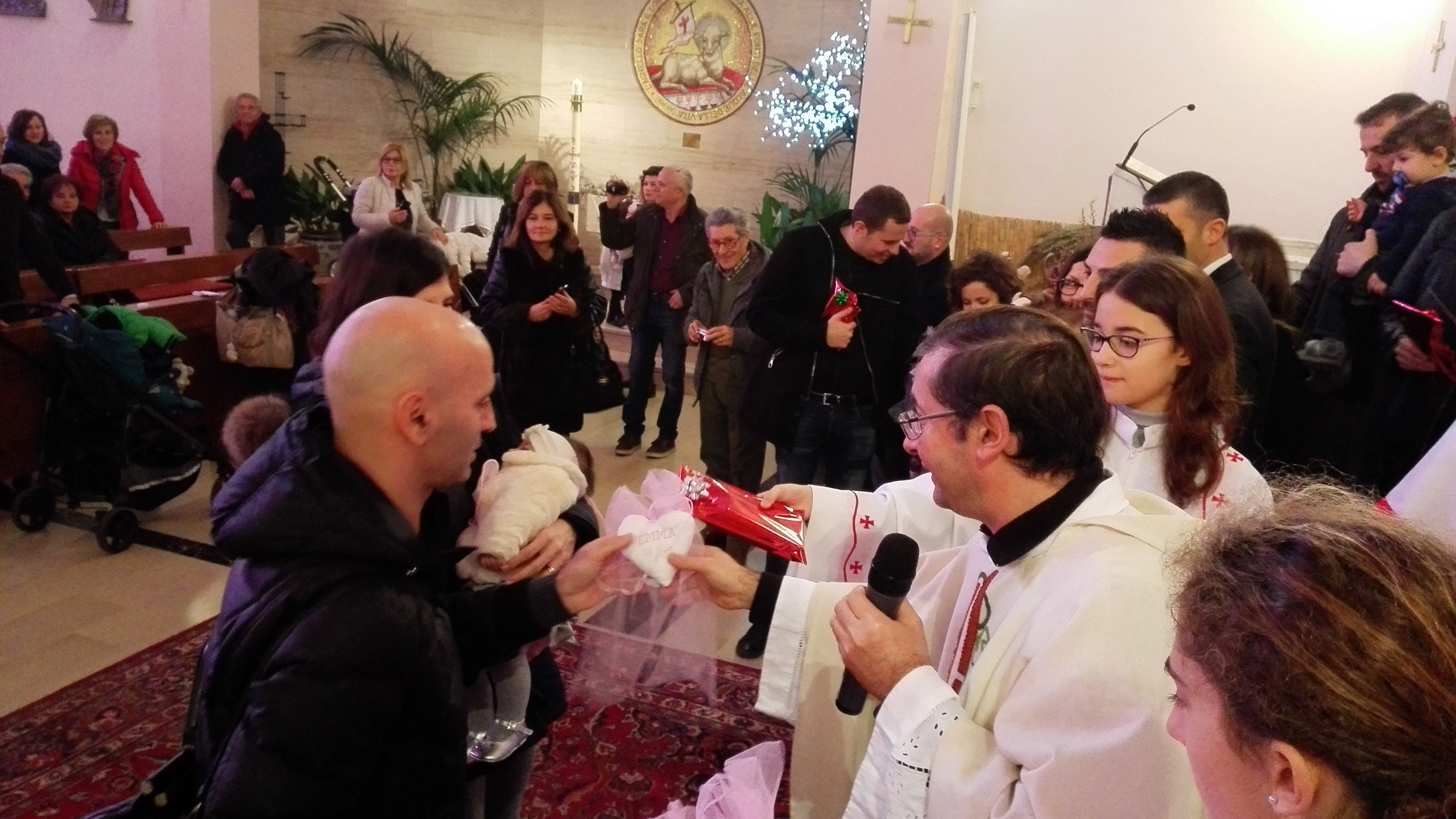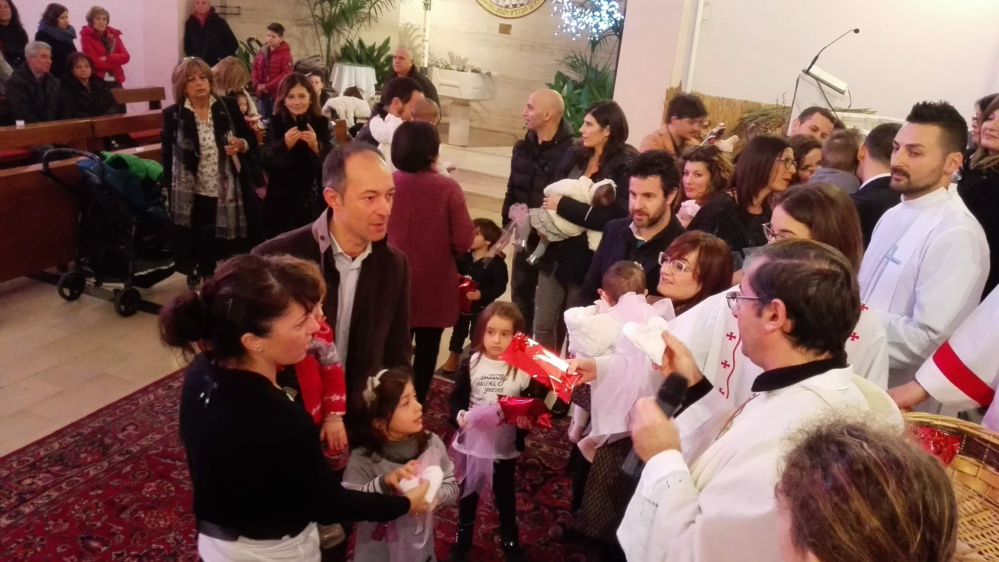 La S. Messa è stata presieduta dal Parroco don Francesco Ciabattoni che ha impartito la benedizione sui 28 bambini battezzati nell’anno 2015, cui è seguita la cerimonia di accensione delle candele ed il rinnovo delle promesse battesimali; al termine del rito, i genitori hanno letto una preghiera per i loro figli ed hanno ricevuto in dono il cuore che il giorno del Battesimo i padrini hanno simbolicamente appeso all’albero della vita, a testimonianza dell’impegno di crescere i piccoli nella fede.