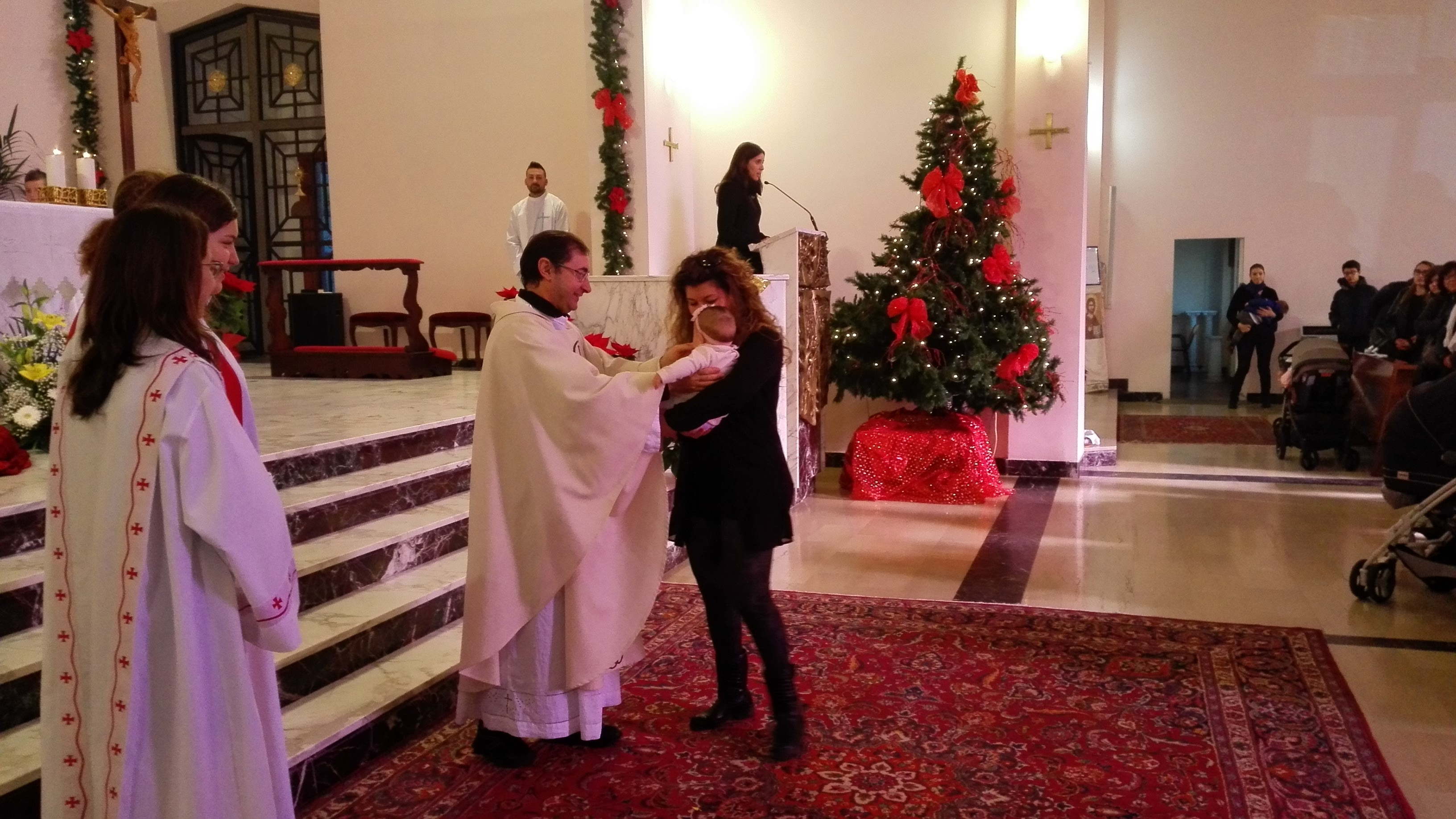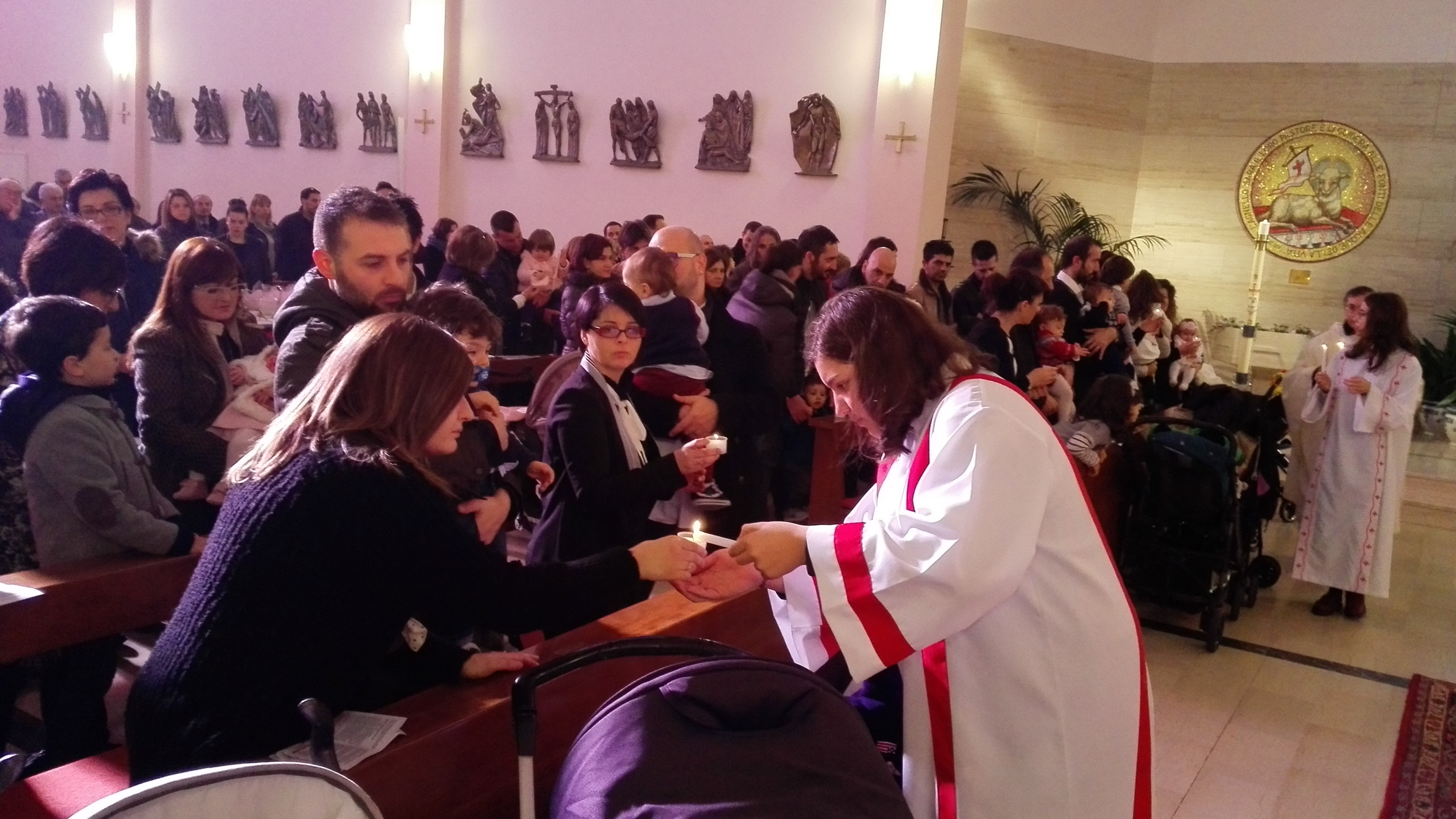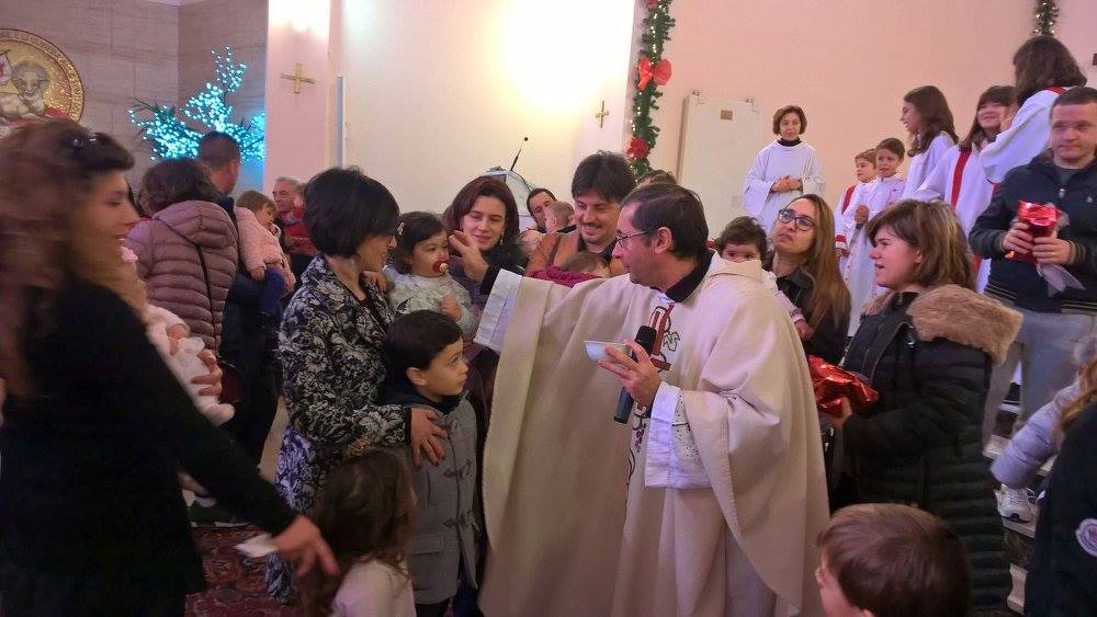 La S. Messa è stata presieduta dal Parroco don Francesco Ciabattoni che ha impartito la benedizione sui 28 bambini battezzati nell’anno 2015, cui è seguita la cerimonia di accensione delle candele ed il rinnovo delle promesse battesimali; al termine del rito, i genitori hanno letto una preghiera per i loro figli ed hanno ricevuto in dono il cuore che il giorno del Battesimo i padrini hanno simbolicamente appeso all’albero della vita, a testimonianza dell’impegno di crescere i piccoli nella fede.