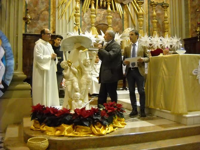 Gaetani ha ringraziato innanzitutto il parroco don Alfredo per il suo sostegno e la generosa collaborazione, poi ha ringraziato la giuria composta dai fratelli Gioacchino e Fabrizio Mosca e dal Presidente del Consiglio dei Ragazzi Tommaso Palestini. Poi ha ringraziato tutte le famiglie che hanno aderito al concorso ricordando che i premi ai vincitori non hanno un grande valore economico ma vogliono essere un incoraggiamento a continuare la realizzazione dei presepi in famiglia sottolineando il grande valore che esso racchiude da non farci portare via. Infine ha ringraziato tutta l’amm.ne comunale invitando il vice sindaco Balletta a premiare di persona i vincitori. Il vice sindaco ha ringraziato tutti coloro che hanno in qualche modo partecipato e sostenuto inziando da Gaetani, il parroco, le famiglie e i fratelli Mosca per il loro costante impegno per il concorso e per l’iniziativa “La via dei presepi” che ogni anno vede sempre più visitatori. Il rag. Balletta ha continuato dicendo che oltre ad avere un forte valore cristiano, in quanto Gesù è nato per la salvezza di tutti, è anche una realtà. Il presepe è una realtà viva e vera non una finzione in quanto Gesù è un personaggio storico realmente nato e vissuto come attestano molti documenti. Prima di iniziare la premiazione il vice sindaco ha ringraziato per la sua costante presenza alle iniziative acquavivane il vescovo emerito mons. Gestori.