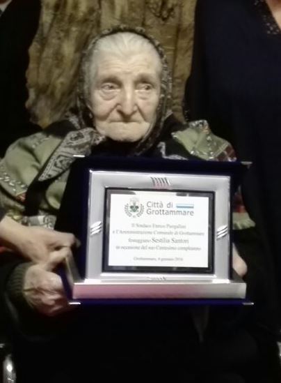 Una grande festa è stata organizzata domenica 10 gennaio per la signora Sestilia Santori, che il giorno 4 aveva raggiunto il traguardo del secolo. Classe 1916, la signora Sestilia vive con i nipoti in zona Monti. La partecipatissima festa in suo onore si è svolta presso una sala dell’Oasi Santa Maria ai Monti.