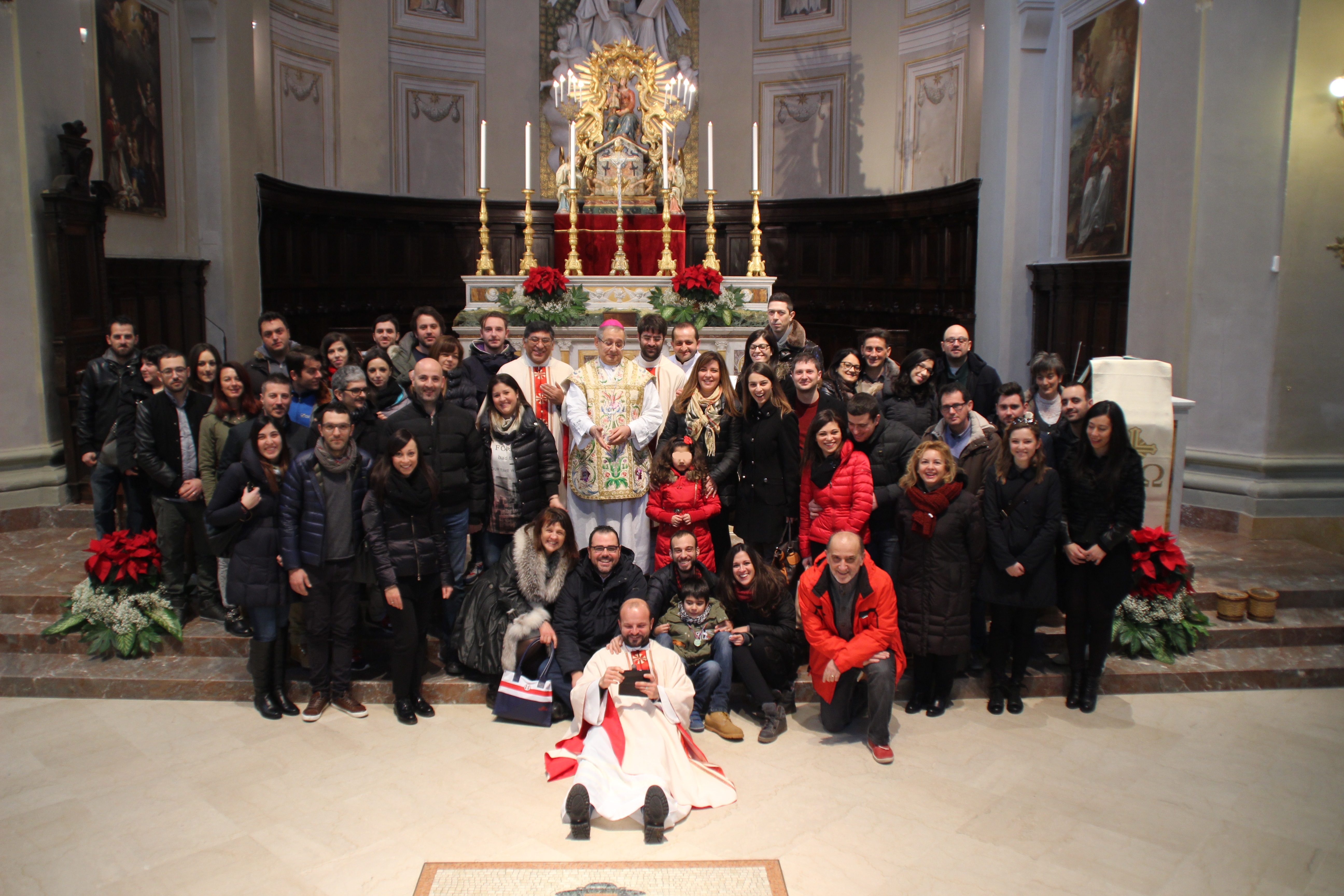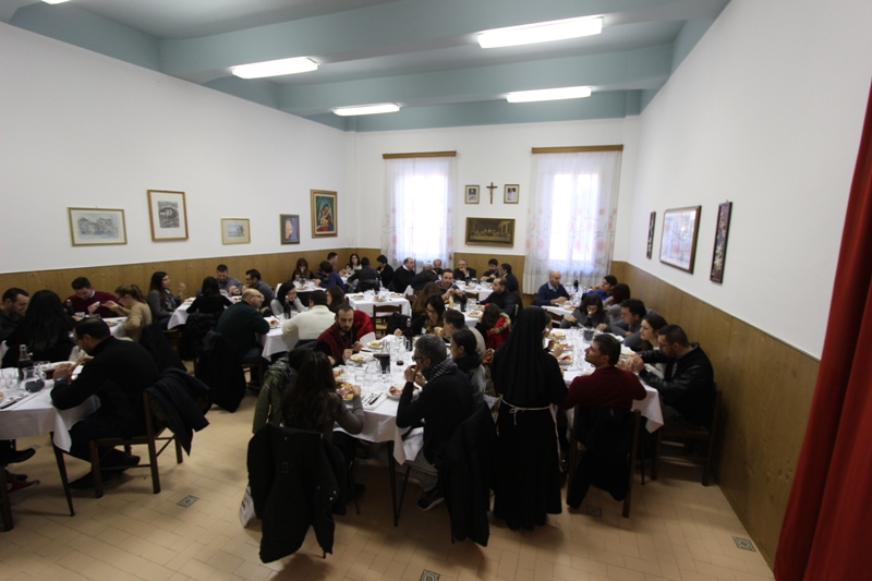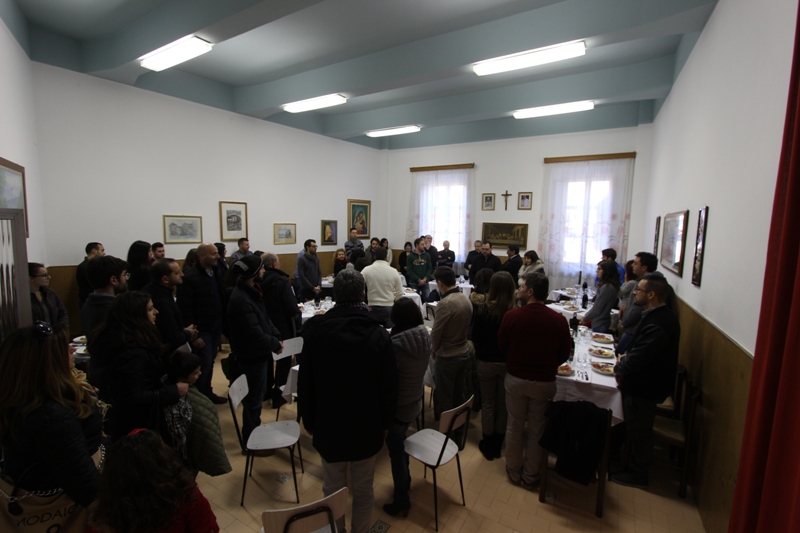 Terminata la Messa, tutti i fidanzati, il vescovo e i parroci, hanno vissuto insieme un’agape fraterna presso il convento delle suore teresiane, durante la quale si è anche festeggiato con grande allegria il XII anniversario di matrimonio dei coniugi Imbrescia impegnati nell’equipe di formazione.