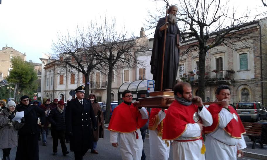ACQUAVIVA PICENA – Domenica 17 gennaio ad Acquaviva Picena si è svolta la festa in onore di sant’Antonio abate. Nel convento di san Lorenzo degli agostiniani scalzi sono state celebrate le sante Messe delle 07:30, 10:00, 11:15, 15:30 mentre le sante Messe delle 09:30 e delle 18:30 sono state celebrate in parrocchia tutte in onore di sant’Antonio. I festeggiamenti sono iniziati già da due settimane quando i cantori di sant’Antonio dell’Associazione san Francesco hanno percorso a piedi in lungo e in largo tutto il paese passando di casa in casa per la questua, cantando canzoni di sant’Antonio e della Pasquella. Alle 16:30 circa, nonostante ci fosse la neve e -1 gradi sotto lo zero, si è svolta la solenne processione con la statua del santo e la benedizione degli animali e delle campagne. Il comitato dei festeggiamenti per sant’Antonio ha dato appuntamento a tutti gli anziani il 28 febbraio per partecipare insieme al tradizionale pranzo.