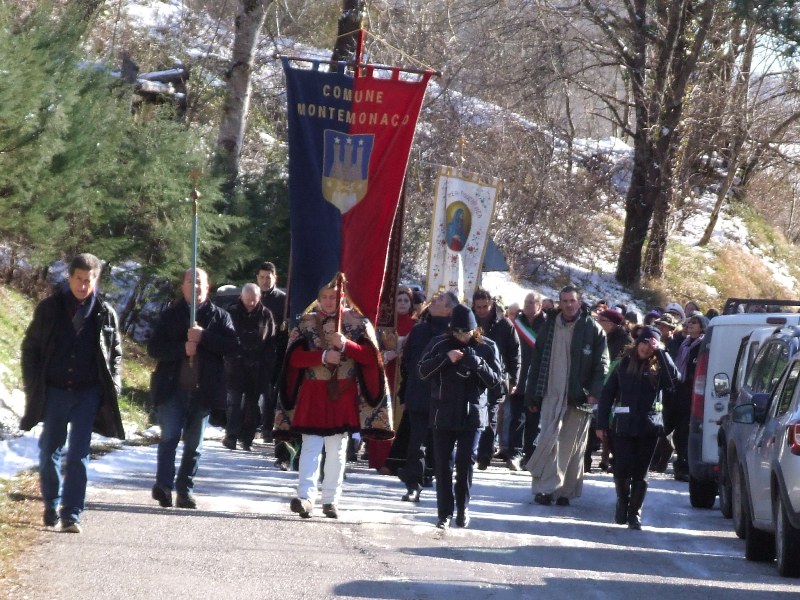 MONTEMONACO – Non è stato la temperatura rigida a fermare la processione che ogni anno si ripete in onore di San Sebastiano protettore della Polizia Municipale.