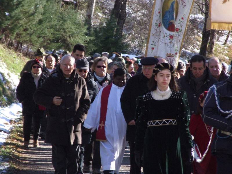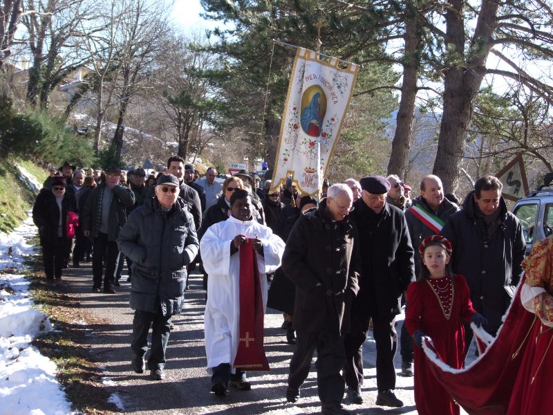 Avvolti in uno scenario inverosimile, arricchito da un cielo profondamente azzurro da confondersi con il mare, i fedeli che sono partiti dalla piazza centrale di Montemonaco per poi proseguire per 4 chilometri fino alla chiesa di Santa Maria in Casalicchio, presso la frazione Tofe, per ringraziare il Santo della scampata peste, hanno vissuto momenti che difficilmente si riescono a raccontare.