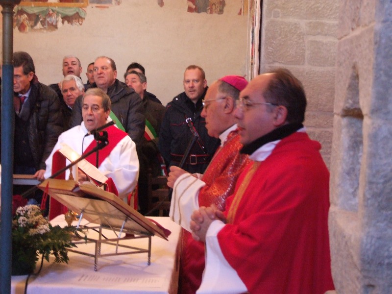 Il Sindaco Onorato Corbelli, il parroco Don Dino Straccia e il vicario parrocchiale P. Watson Paramasivam, hanno accolto il Vescovo emerito S.E. Gervasio Gestori, che ha presieduto la celebrazione eucaristica, la quale ha visto la presenza di centinaia di intervenuti.