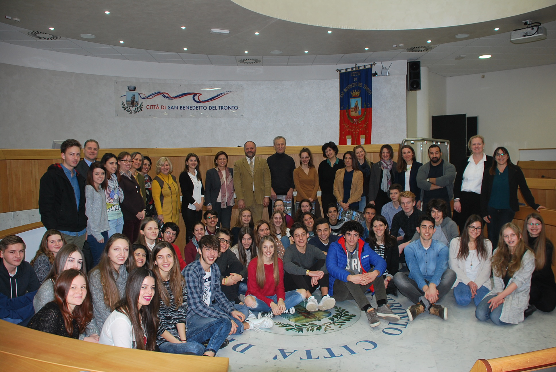 SAN BENEDETTO DEL TRONTO – Nel municipio di San Benedetto del Tronto sono stati ricevuti nella mattina di lunedì 25 gennaio gli studenti provenienti da sette paesi europei e aderenti al progetto Erasmus ospitato dal liceo scientifico “Rosetti”.