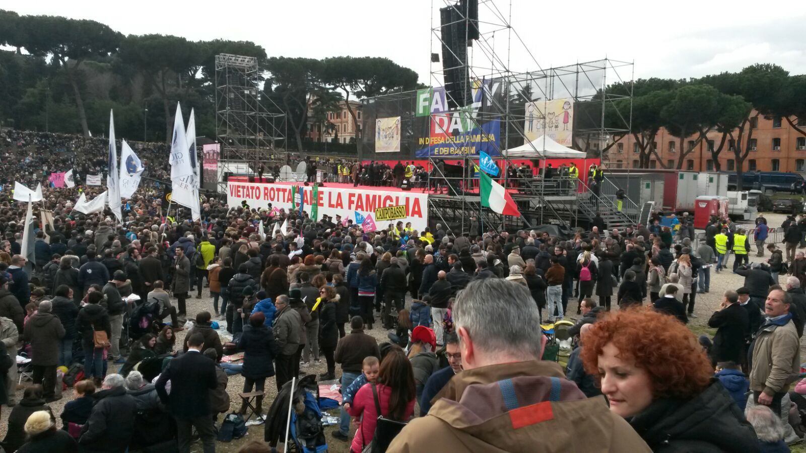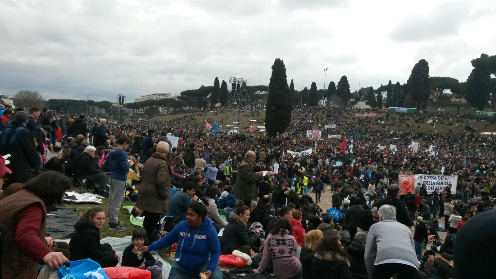 SANT’EGIDIO ALLA VIBRATA – Al Circo Massimo di Roma è andata in scena la manifestazione in difesa della famiglia e del diritto dei bambini ad avere una mamma e un papà, che ha visto la partecipazione anche di tante persone provenienti dalla Val Vibrata. Infatti, da Sant’Egidio alla Vibrata, alle ore 7.30 circa, un pullman di santegidiesi e civitellesi è partito in direzione della capitale per unirsi ai circa 1500 provenienti da tutta Italia, facendo tappa anche a Teramo dove altri si sono aggiunti: un viaggio, dunque, di ben 60 persone, tra le quali c’erano, oltre a dieci bambini, anche Don Aleandro, da Civitella del Tronto, la vicepresidente del forum abruzzese Paola D’Alesio e il responsabile diocesano di bioetica avv. Massimo Micaletti. A Roma era anche presente il sindaco di Sant’Egidio alla Vibrata Rando Angelini, da sempre sensibile e vicino a queste tematiche.