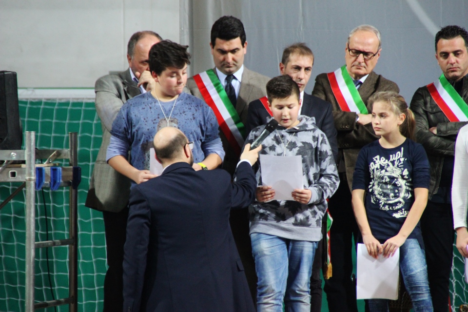 “Carissimi sindaci benvenuti! Siamo i ragazzi dell’ACR provenienti da molte parrocchie della nostra diocesi accompagnati dai ragazzi degli oratori diocesani e dai piccoli atleti del Centro Sportivo Italiano della provincia di Ascoli Piceno. Nei giorni scorsi abbiamo recapitato nei vostri uffici l’invito a partecipare alla nostra festa. Un invito un po’ strano perché non abbiamo specificato che a parlare oggi saremmo stati noi. Visto che per noi ragazzi non è facile farci ascoltare, approfittiamo di questa occasione per trasmettervi il nostro pensiero. Papa Francesco nel suo messaggio per la 49° Giornata mondiale per la pace ci dice: “L’indifferenza nei confronti delle piaghe del nostro tempo è una delle cause principali della mancanza di pace nel mondo. L’indifferenza oggi è spesso legata a diverse forme di individualismo che producono isolamento, ignoranza, egoismo e dunque disimpegno”.