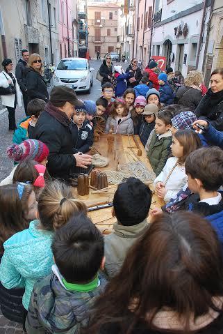 Tanti bambini delle scuole, accompagnate dai loro insegnanti, hanno potuto osservare le retare Vittoria, Gilda, Pacina e Vittoriana lavorare le maglie rievocando il mestiere che per decenni ha impegnato tante donne della San Benedetto di allora, mentre Francesco Bovara e Giuliano Zazzetta, in gioventù addetti a “girare la ruota”, hanno ricordato quel duro lavoro infantile mostrando una riproduzione del “sentiero dei funai” e alcune riproduzioni di giochi che i bambini costruivano con le loro mani.
