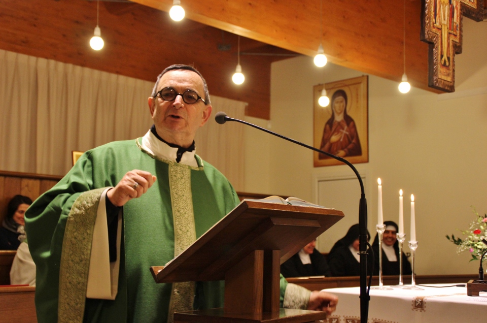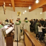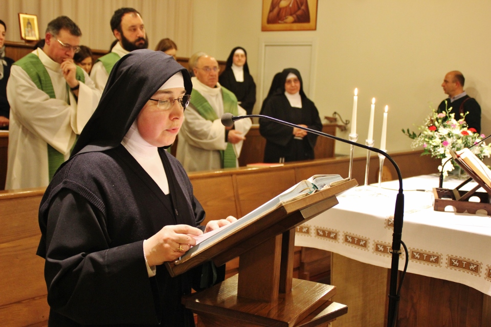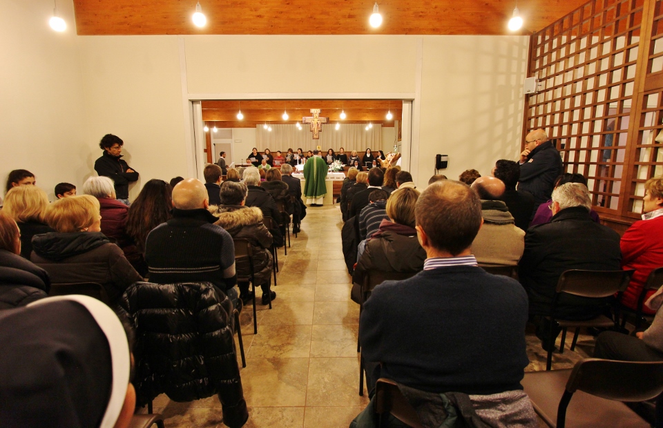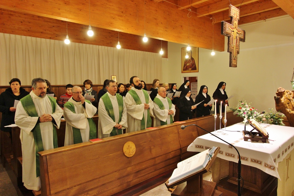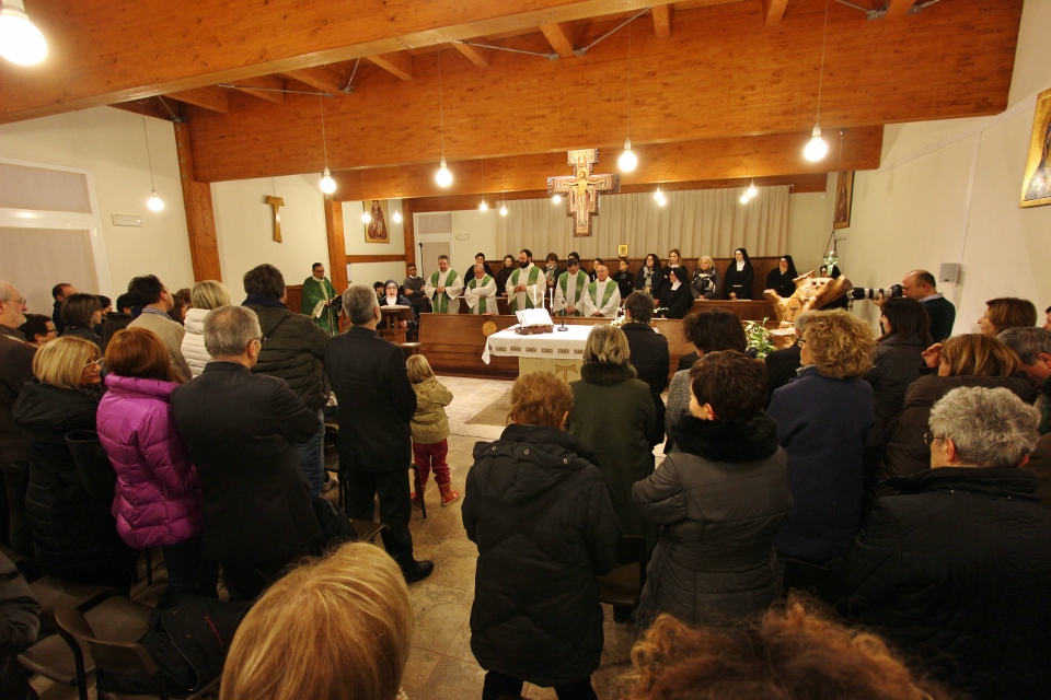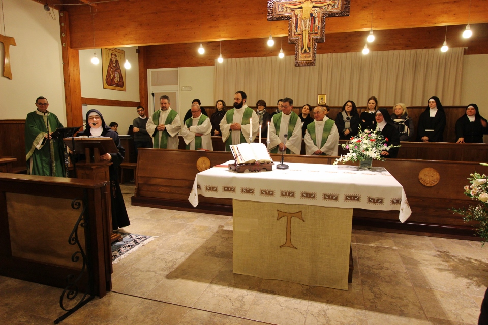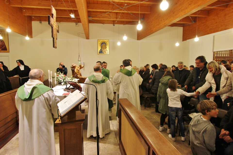 Durante la celebrazione presieduta il Provinciale dei frati minori conventuali delle Marche, padre Giancarlo Corsini, ha affermato: “Qualcuno di voi si ricorderà com’era la casa, prima, durante e dopo. Prima era una casa abbandonata, fatiscente; poi una casa restaurata; dopo ancora una casa che pian piano è cresciuta, come pian piano è cresciuta la comunità delle monache. Credo sia bello sedersi qui e guardare quello che il Signore ha compiuto in questi anni, nel segno di una gratitudine grande. Ricordo un’espressione strana di alcuni muratori che lavoravano qui vicino e vedevano alcune monache che zappavano l’orto (e quanto erano esperte!); insolite scene per i loro occhi, ma pian piano si registrò una crescita. Mettiamo, ora, che una coppia si sposi per un’avventura qualsiasi perda la fede: se nel matrimonio abbiamo una donna e un uomo seri, il matrimonio va avanti, perché ha due punti di appoggio.