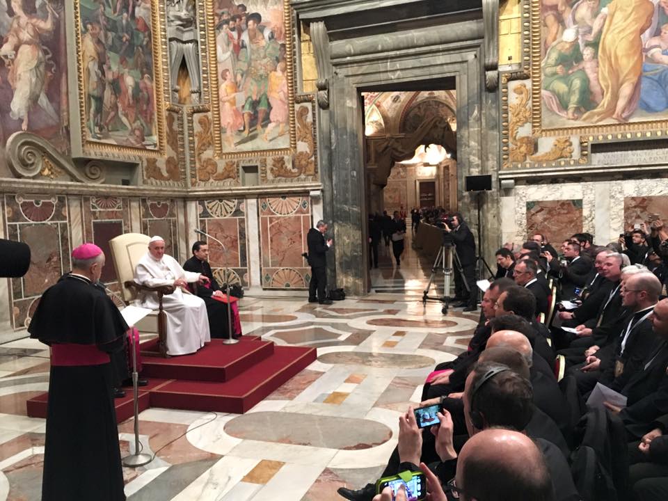 Nell’udienza di ieri pomeriggio in Sala Regia in Vaticano davanti ai 726 Missionari della Misericordia presenti, tra cui il nostro Don Ulderico Ceroni, il Papa ha affermato che un buon confessore deve “capire non solo il linguaggio della parola, ma anche il linguaggio dei gesti”. Papa Francesco ha poi esortato ogni singolo confessore a tenere “le braccia aperte per capire cosa c’è dentro in quel cuore che non può venire detto”. Di fronte a sé, infatti, chi sta nel confessionale trova “un peccatore pentito, che non vorrebbe essere così ma non può”, e che magari “non riesce a dirlo”.