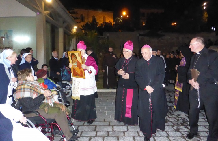 La risposta dei fedeli. Non sono bastate le temperature rigide a impedire ai fedeli e ai malati della capitale amministrativa della Cisgiordania e dei dintorni di affluire nella chiesa parrocchiale della Sacra Famiglia e ricevere il sacramento degli infermi. Oltre 80 di loro hanno ricevuto l’unzione per le mani dei vescovi presenti. La cerimonia ha avuto anche un significativo prosieguo in un locale nel villaggio cristiano di Beit Jala gestito da un giovane disabile e nella visita di diverse strutture che ospitano malati, bambini e disabili, di Betlemme: il Caritas Baby Hospital delle Suore Francescane, l’Orfanotrofio “Casa della pace” delle Suore di Santa Elisabetta, l’Ospedale della Sacra Famiglia, tenuto dall’Ordine di Malta, la Mangiatoia (Crèche) delle Figlie della Carità di San Vincenzo de’ Paoli, il Pontificio Istituto Effetà delle Suore di Santa Dorotea e l’Hogar Niño de Dios della Comunità del Verbo Incarnato. A Betlemme, l’8 febbraio, monsignor William Shomali, vicario patriarcale per la Palestina, ha celebrato messa nella chiesa di Santa Caterina. Con lui diversi vescovi, tra i quali monsignor Boutros Moshe, arcivescovo siro-cattolico di Mosul (Iraq), che ha cantato in aramaico il Vangelo della Natività.