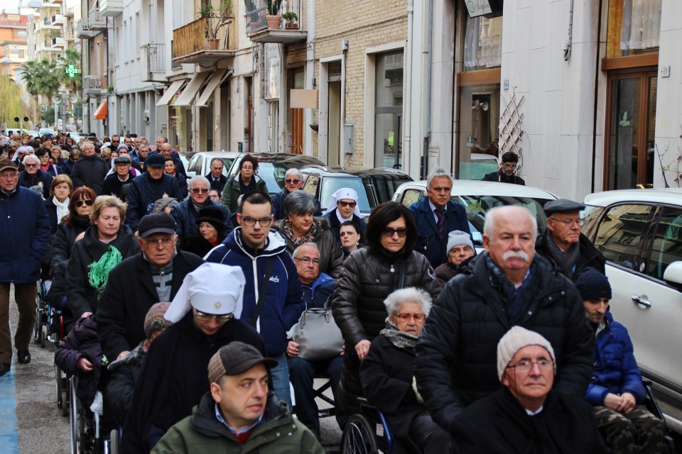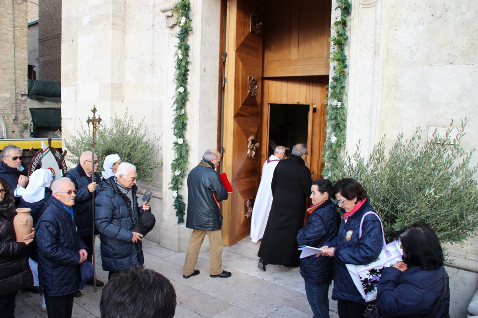 Alle ore 15.00 tutti gli amici dell’Unitalsi, i malati, i volontari, i fedeli, gli operatori sanitari e della pastorale si sono ritrovati presso Piazza Matteotti a San Benedetto del Tronto dove è iniziata, dopo una breve monizione da parte di Don Vincenzo Catani, il pellegrinaggio che ha portati tutti i presenti ad attraversare la porta Santa e ad entrare presso la Cattedrale Madonna della Marina.