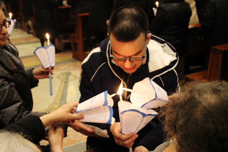 Con papa Francesco «a tutti coloro che sono al servizio dei malati e dei sofferenti, auguro di essere animati dallo spirito di Maria, Madre della Misericordia. “La dolcezza del suo sguardo ci accompagni in questo Anno Santo, perché tutti possiamo riscoprire la gioia della tenerezza di Dio” (Misericordiae Vultus, 24) e portarla impressa nei nostri cuori e nei nostri gesti. Affidiamo all’intercessione della Vergine le ansie e le tribolazioni, insieme alle gioie e alle consolazioni, e rivolgiamo a lei la nostra preghiera, perché rivolga a noi i suoi occhi misericordiosi, specialmente nei momenti di dolore, e ci renda degni di contemplare oggi e per sempre il Volto della misericordia, il suo Figlio Gesù».
