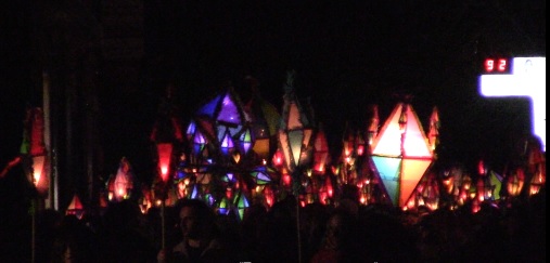 Punto d’arrivo di questa camminata è Piazza Umberto I, e durante il percorso nella Castignano Moderna e Contemporanea, ci siamo imbattuti con tante persone che portano uno o più lampioncini multicolori costruiti artigianalmente con perizia e passione