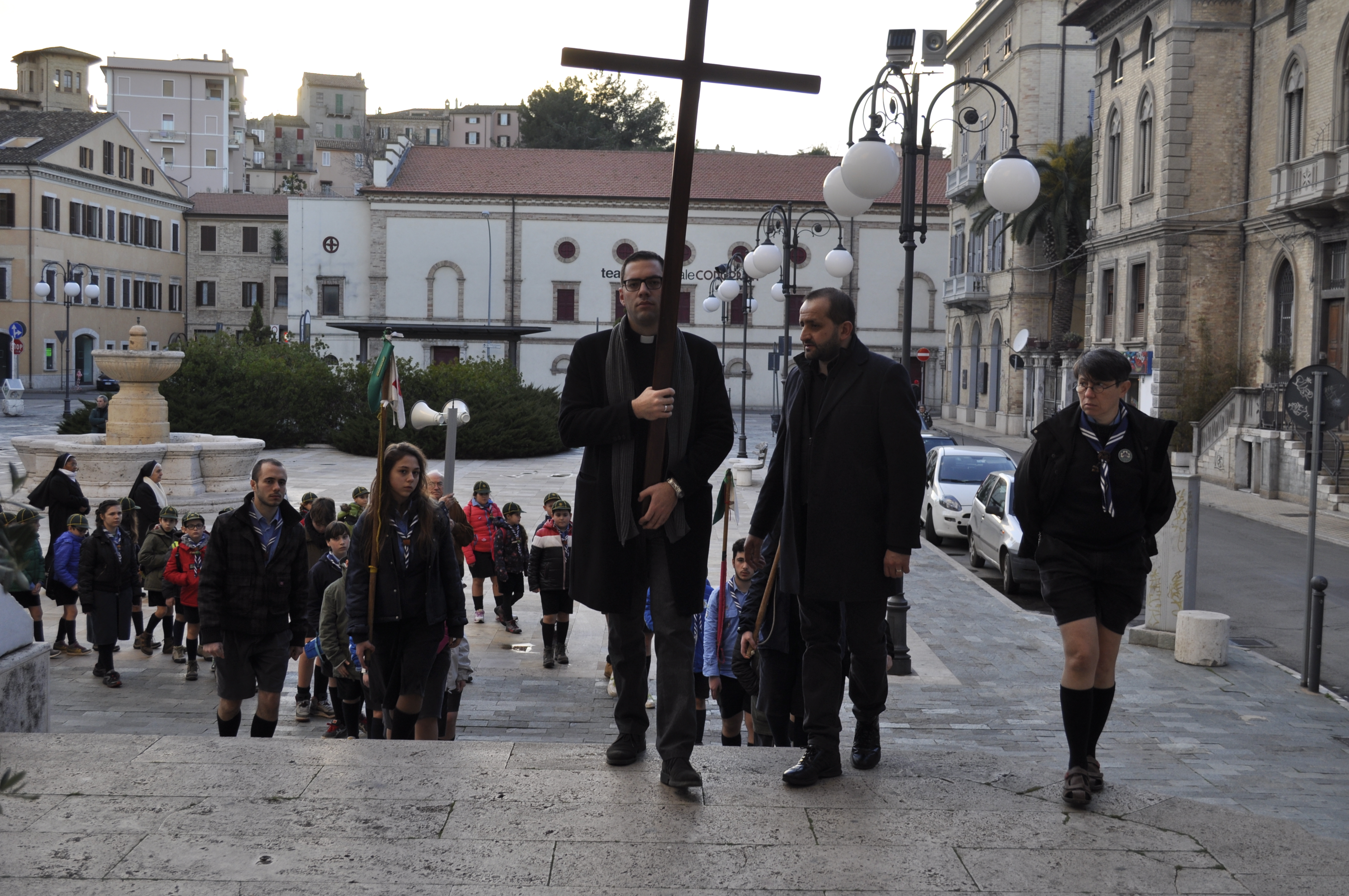 Con questo spirito i tanti fedeli della vicaria si sono radunati nel pomeriggio di Domenica presso la chiesa dei Padri Sacramentini di San Benedetto, per procedere processionalmente col Vescovo, i sacerdoti, i religiosi e i ragazzi scout, dietro la croce per le vie della città, cantando salmi e litanie.
