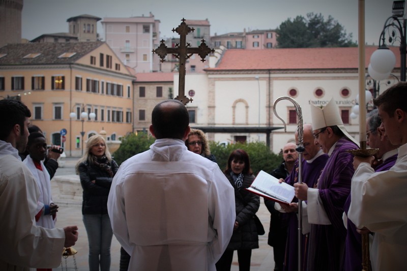Alle ore 17.30 è iniziata la Santa Messa presieduta dal Vescovo Carlo Bresciani e concelebrato anche dal Parroco della Cattedrale Mons. Romualdo Scarponi, il Parroco di San Pio V – San Giovanni Battista in Grottammare, Don Giorgio Carini, presente anche il Diacono Don Walter Gandolfi.