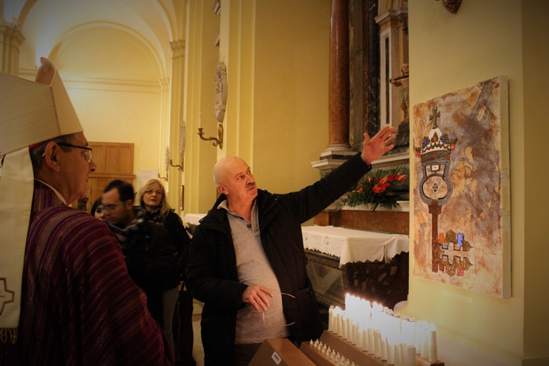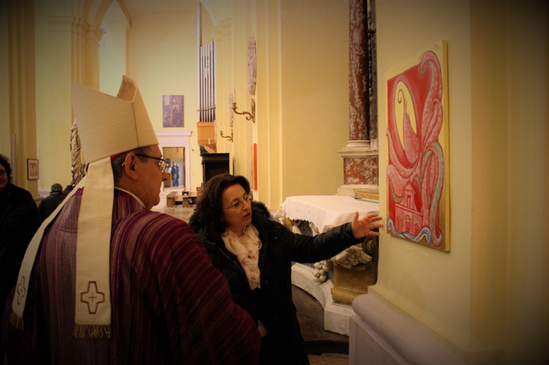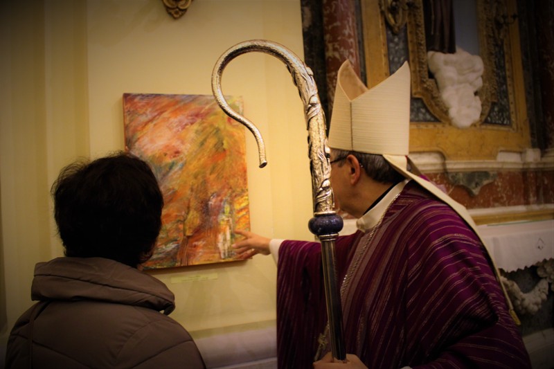 Ogni dipinto ha suscitato la curiosità del nostro Vescovo Carlo, che ha apprezzato ogni opera, nonché le puntuali e dettagliate descrizioni di ogni artista, ognuno aventi stili e forme di grande originalità.
