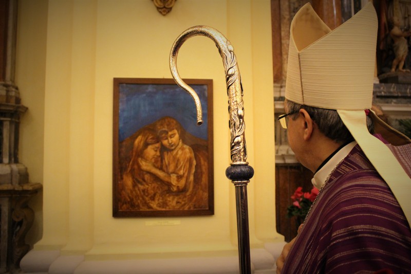 Così il Vangelo di oggi che ci introduce molto bene al Giubileo della Misericordia che stiamo celebrando, carissimi artisti della nostra diocesi. Siamo qui a invocare la misericordia di Dio, e la risposta Dio ce la dà in maniera estremamente consolante. Se noi chiediamo in sincerità misericordia, se la cerchiamo bussando con fiducia, Dio non si nega mai. Se la doniamo a coloro che in qualche modo incrociamo nella nostra vita, diventiamo misericordiosi come il Padre nostro che è nei cieli.