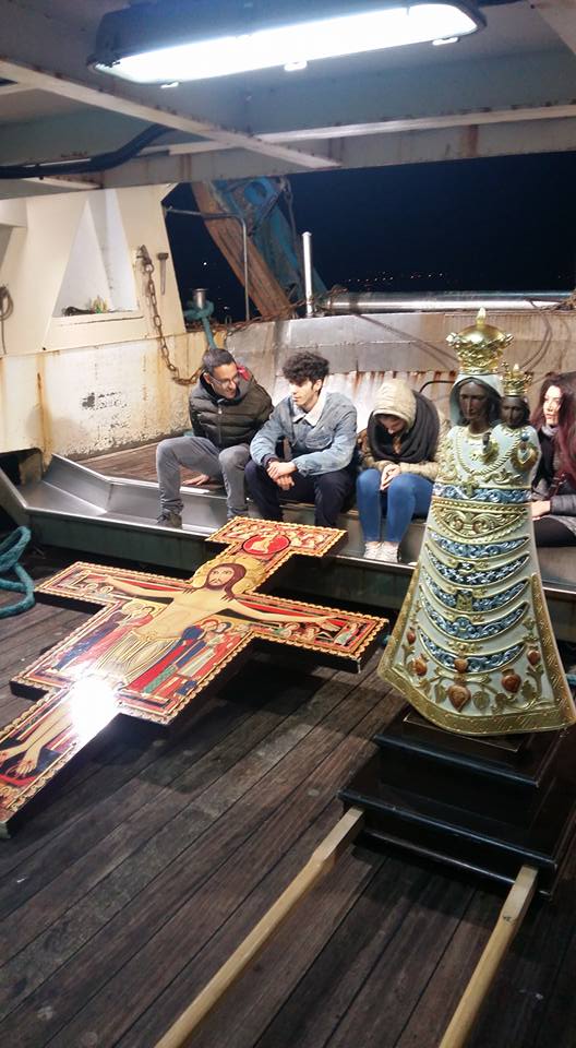 Le immagini poi hanno proseguito il cammino in diocesi stazionando a Grottammare presso “Casa Lella” per poi effettuare un tragitto in mare e sbarcare a San Benedetto in serata ed essere accolta dai giovani e dal Vescovo Carlo Bresciani.
