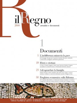 Il primo fascicolo di “Documenti” del 2016 propone, tra l’altro, il messaggio del Papa per la Giornata mondiale della pace, il suo intervento al Tempio maggiore a Roma, alcuni interventi del Papa e dei vescovi nei quali esortano a tutelare la “verità del matrimonio secondo il disegno di Dio”, la preghiera ecumenica per commemorare i 500 anni della Riforma nel 2017.