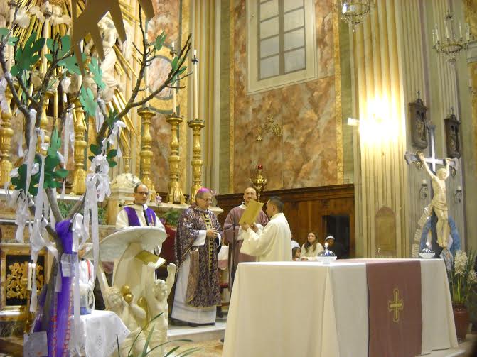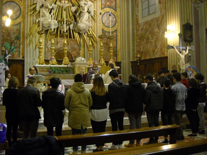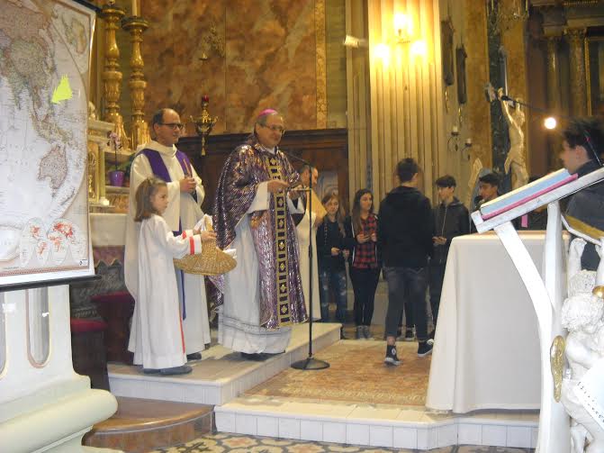ACQUAVIVA PICENA – Domenica 13 marzo il vescovo Sua Eccellenza Mons. Carlo Bresciani ha presieduto la Santa Messa nella parrocchia di San Niccolò di Acquaviva Picena concelebrata dal parroco don Alfredo Rosati e con l’assistenza del diacono permanente Giovanni. A questa Celebrazione hanno partecipato i ragazzi che quest’anno riceveranno il Sacramento della Confermazione, tutti accompagnati dai loro genitori e madrine e padrini.