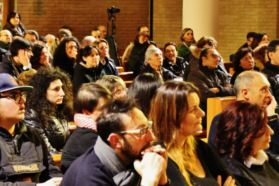GROTTAMMARE – Alessandro Sortino, giornalista e direttore creativo di TV2000, ma tutti continuano a ricordargli che era una delle Iene sebbene da molto tempo non vesta più quei panni, ha parlato di misericordia presso la chiesa “Madonna della Speranza” di Grottammare. Ha introdotto la sua riflessione proprio dall’esperienza delle Iene, ricordando che uno dei motivi per cui ha scelto di fare il suo lavoro è nato dalla lettura di Renè Girard sul concetto di capro espiatorio. Ha presentato la società oggi con un’immagine: quella di un castello dove si sta bene, si fa festa e si banchetta, e fuori coloro che non hanno accesso a questo banchetto. Ma i partecipanti al ricco banchetto non sanno che a qualcuno di loro a rotazione toccherà essere buttato fuori in pasto a quelli che stanno fuori, capro espiatorio appunto, ma anche quella cultura dello scarto di cui parla papa Francesco.