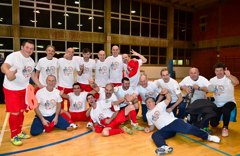 SAN BENEDETTO DEL TRONTO – La Sordapicena San Benedetto ha conquistato per la quinta volta lo scudetto di calcio a cinque Over 35 Fssi ottenendo al termine della final four di Bergamo un risultato eccezionale se si considera che i rossoblu allenati da Giorgio Vicini sono al quarto titolo consecutivo. In semifinale i sambenedettesi hanno affrontato il Potenza, che cercava la rivalsa dopo essere stata sconfitta in finale dalla formazione rivierasca sia nel 2015 che nel 2014. Durante il primo tempo si infortuna uno dei giocatori più importanti della Sordapicena, Gaetano Cacciapaglia, ed è costretto ad abbandonare la partita, che alla fine del primo tempo li vede sotto 0-1. Ma nel secondo tempo la Sordapicena recupera e arriva a una netta vittoria finale per 5-2 (goal di Caboni 2, Catalano, Lucà e Magotti). In finale i rossoblu si trovano di fronte Milano, che aveva sconfitto il Frosinone in semifinale per 6-2. Anche in questa partita il primo tempo si conclude con la Sordapicena in svantaggio 0-1 e con grande nervosismo dei giocatori. Nei primissimi minuti del secondo tempo, però, c’è il pareggio firmato da Ivan Camela e poi il sorpasso con il goal di Francesco Paolo Catalano, ma a quattro minuti dalla fine giunge il goal di Milano che porta le squadre ai supplementari. Nel primo tempo dell’extra time i sambenedettesi vanno in vantaggio con Simone Lanari (entrato in sostituzione di Camela) e poi arriva il definitivo 4-2 con il goal di Dino Magotti. Il fischio finale è accolto con grandissima gioia da parte di tutto lo staff della Sordapicena che anche in questa occasione importantissima è stata supportata dal colorato e vivacissimo tifo (circa trenta i sostenitori che avevano raggiunto la Lombardia per tifare i rossoblu). Al termine della partita i giocatori hanno indossato una maglietta con la foto dell’ex presidente Augusto Bruni, scomparso prematuramente lo scorso anno, con la frase “abbiamo combattuto per te”. Questi gli atleti della Sordapicena che hanno conquistato lo scudetto 2016. Alberto Ameli, Antonio Caboni, Gaetano Cacciapaglia, Ivan Camela, Gabriele Illuminati; Francesco Paolo Catalano, Simone Lanari, Ferdinando Salvatore Lucà, Dino Magotti, Costantino Merlini (Capitano), Michele Piglionica, Antonio Rizzaro, Paolo Tosello. Allenatore: Giorgio Vicini; vice-allenatore: Pier Paolo Brivio; dirigenti-accompagnatori: Adriano De Angelis e Anteneh Santori; massaggiatore: Sergio Del Brocco; presidente: Fausto Lucidi.