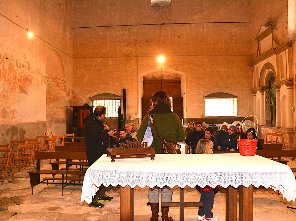 Il monumento si presenta all’interno ricco di dipinti murali risalenti al XV° secolo (quelli del “sacello” sito alle spalle dell’altare maggiore recentemente restaurati). Anche in questo caso abbiamo avuto il piacere di condividere il pomeriggio con quei ragazzi, sempre attenti, partecipi e meravigliati. Decisivo anche l’apporto Cristina Franca (che si è occupata dell’apertura della Chiesa quale interessatissima, e sempre disponibile, “contradaiola” per la cultura e il ricordo) e di Cristian Mostardi anche lui sempre pronto e presente in un momento di necessità come questo (e quando si tratta di diffondere le bellezze Storiche e Architettoniche di questo nostro paese!).
