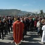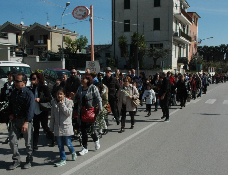Dopo che don Dino Pirri ha benedetto le palme, è iniziata la solenne processione verso il piazzale della Piscina Comunale di Grottammare, dove è stata celebrata la Santa Messa.