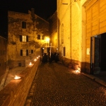 Al termine della Concelebrazione, ci si è recati in corteo processionale, nel lento incedere silenzioso e frusciante delle vesti che è ancora buio, nel silenzio dell’alba, alla volta della Chiesa di Santa Lucia, dove era stata allestita, con la confraternita dell’Addolorata, la “macchina-apparato” carica di lumini e in mezzo, il protagonista, il Santissimo Esposto, manifestazione di Cristo incarnato in un’Ostia.