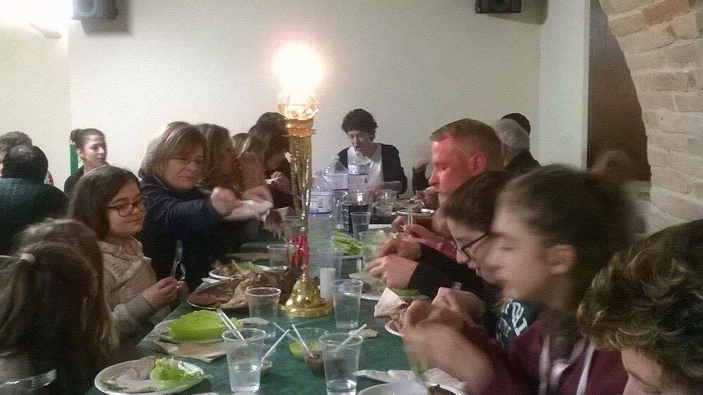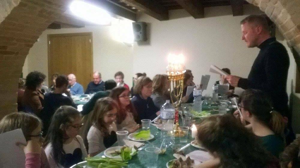MONTALTO DELLE MARCHE – “Schiavi fummo del faraone in Egitto; ma di là ci fece uscire il Signore nostro Dio, con mano forte e braccio disteso”. Così abbiamo risposto insieme alla domanda su cosa ci fosse di speciale rivoltaci dai bambini e dai ragazzi nella Cena preparata per loro e per tanti parrocchiani, nella Ludoteca Comunale di Montalto, nela serata di martedì 22 u. s., per rivivere quanto fatto da Gesù nella sua Ultima Cena, la sera del Giovedì Santo, nell’istituire la Santissima Eucaristia. Le domande dei quattro figli (quattro è numero cosmico) rappresentano tutti gli uomini che si pongono di fronte al fatto religioso: nel rituale ebraico si evidenzia come fra questi quattro figli ci siano il saggio, il malizioso, l’ingenuo e quello che non sa porre domande. Noi abbiamo fatto tutto in forma semplificata più consona alla nostra mentalità, ma risulta ugualmente chiaro che la domanda dei figli al padre, e la conseguente risposta che ne scaturisce, esprimono come la famiglia sia la prima educatrice alla fede e come la Rivelazione superi i limiti del tempo trasmettendosi di generazione in generazione. Inoltre, le domande dei bambini attirano inevitabilmente la nostra attenzione sugli elementi pasquali che ritroviamo nell’Ultima Cena del Signore. La rievocazione della Pasqua ebraica, allora, ci ha preparato a celebrare più consapevolmente la Pasqua cristiana. In entrambi i casi, la Liturgia ci vuol rendere presenti all’evento: come recita l’Haggadah (la preghiera pasquale per ecellenza), “Non solo i nostri padri liberò il Santo – Benedetto Egli sia – , ma anche noi liberò insieme con loro”. Far memoria, nel mondo biblico da cui noi desumiamo il concetto di memoriale, non è un semplice rievocare (a parole), rammentare (nella mente) o ricordare (col cuore), ma è attualizzare, render presente, conformemente al significato biblico del verbo zahkar: tutta la nostra liturgia è basata su questo. Il nutrito numero di partecipanti all’Haggadah pasquale, predisposto nei diversi gesti e nelle parole del rituale ebraico, ha potuto così apprezzare il valore catechetico e comunionale della celebrazione. Il ritorno alle proprie case ha lasciato in ciascuno un simpatico ricordo, la voglia di ripetere l’esperienza, e forse, speriamo, un arricchimento personale, che ci accompagnerà ai Riti dei prossimi giorni.