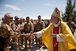 Monsignor Santo Marcianò (Ordinario militare per l’Italia) è rientrato ieri sera dall’Afghanistan, dove si era recato in occasione delle festività pasquali per far visita ed incontrare il contingente militare italiano. Il calendario è stato ricco di momenti di preghiera e di incontri. Il giovedì santo presso l’aeroporto militare di Al Minhad (Emirati Arabi Uniti), sede di una base internazionale, l’Ordinario militare ha presieduto la Messa in Coena Domini, per poi trasferirsi l’indomani ad Herat dove è stato accolto dal Generale Mauro D’Ubaldi. Presso il Camp Arena venerdì santo ha guidato la Via Crucis, mentre l’intera giornata di sabato è stata dedicata agli incontri con i soldati dei diversi corpi operanti sul posto. Durante la celebrazione della domenica di Pasqua, nel corso della quale alcuni militari hanno ricevuto la cresima, Mons. Marcianò ha ripreso quanto già espresso nel messaggio pasquale, e rivolto ai soldati ha ribadito “il momento difficile che il mondo vive vi chiama in causa in modo speciale, interpella il vostro coraggio, la competenza, la dedizione totale fino al rischio della vita, lo stile che vi contraddistingue quali convinti operatori di pace. E la comunità umana, la Chiesa tutta vi è grata per questo”.