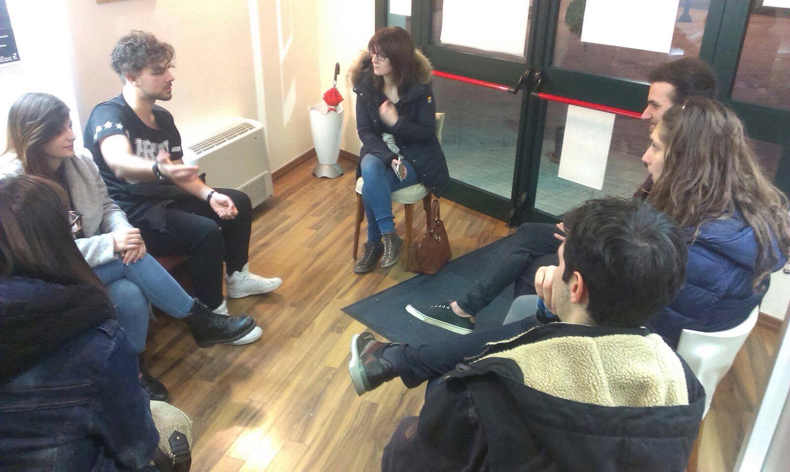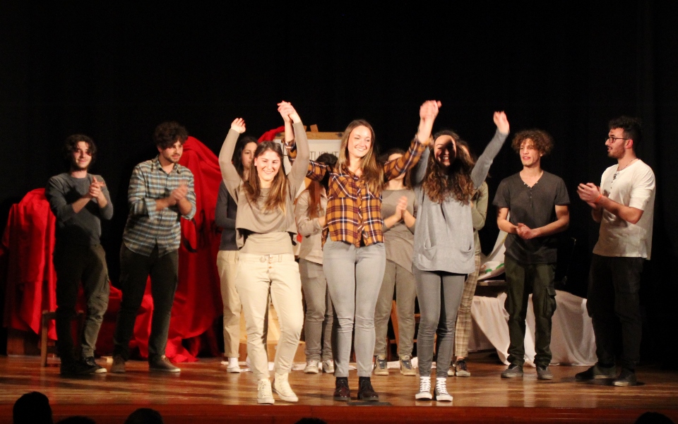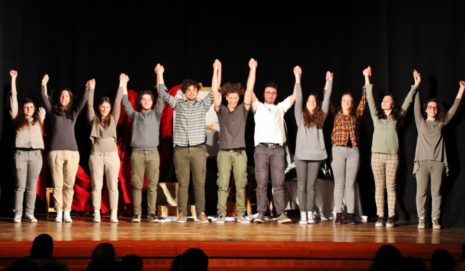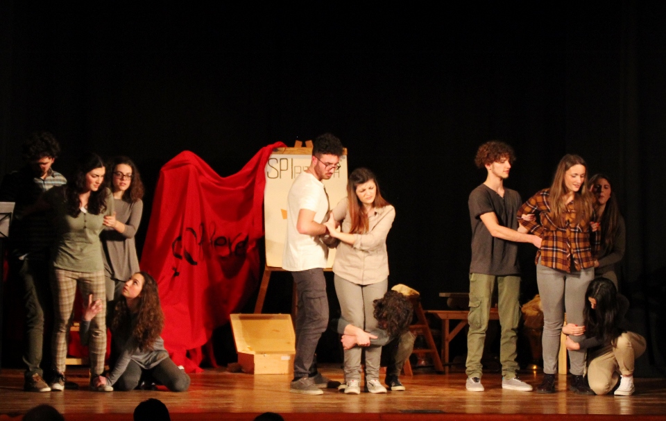 Ester: Quest’impresa è stata un po’ diversa dalle precedenti e infatti molti, sentendosi più a disagio, hanno deciso di non continuarla. Richiedeva, infatti, un impegno personale maggiore e un mettersi in gioco diverso, in prima persona…così da 30 che eravamo siamo rimasti in 11. Certo, all’inizio, vedere che molti abbandonavano ci ha un po’ destabilizzato perché eravamo abituati a “muoverci” in gruppo. Nonostante tutto, però, abbiamo deciso di portare avanti questo progetto e alla fine sono emersi tantissimi “pro”: essendo in pochi a lavorare, abbiamo potuto approfondire meglio la nostra conoscenza, anche attraverso gli esercizi di training, che non per forza erano basati sulla parola, ma che ci hanno portato a creare un legame più forte e a stringere relazioni più strette. Aver avuto un’esperienza comune come questa del teatro ci ha fortemente unito perché ci siamo divertiti, abbiamo condiviso emozioni e sentimenti e in tante occasioni abbiamo avuto modo di sostenerci a vicenda: oggi possiamo dire di fidarci l’uno dell’altro.