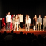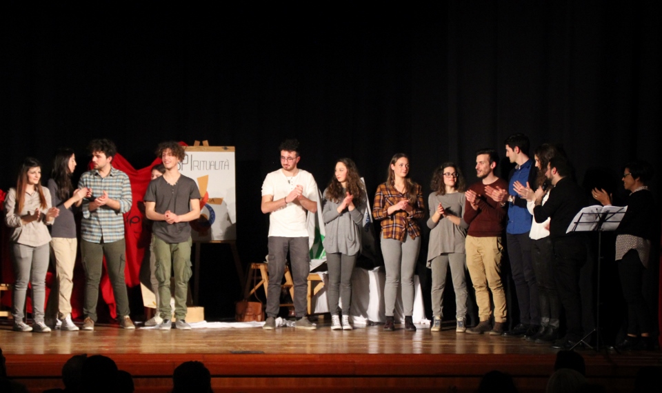 Silvia: Noi ragazzi di Caleidoscopio (un’associazione teatrale no profit nata nel 2009 in seguito ai laboratori estivi della parrocchia di San Filippo Neri), siamo stati contattati qualche mese fa da alcuni ragazzi della parrocchia Regina Pacis di Centobuchi, i quali ci hanno proposto e chiesto di collaborare con loro ad un’esperienza teatrale che facesse da preparazione alla prossima GMG. Il tutto è partito poi a dicembre: all’inizio ci incontravamo una volta a settimana ma poi, man mano che lo spettacolo iniziava a prender forma, abbiamo aumentato gli incontri fino a vederci sempre più assiduamente, anche più volte a settimana.