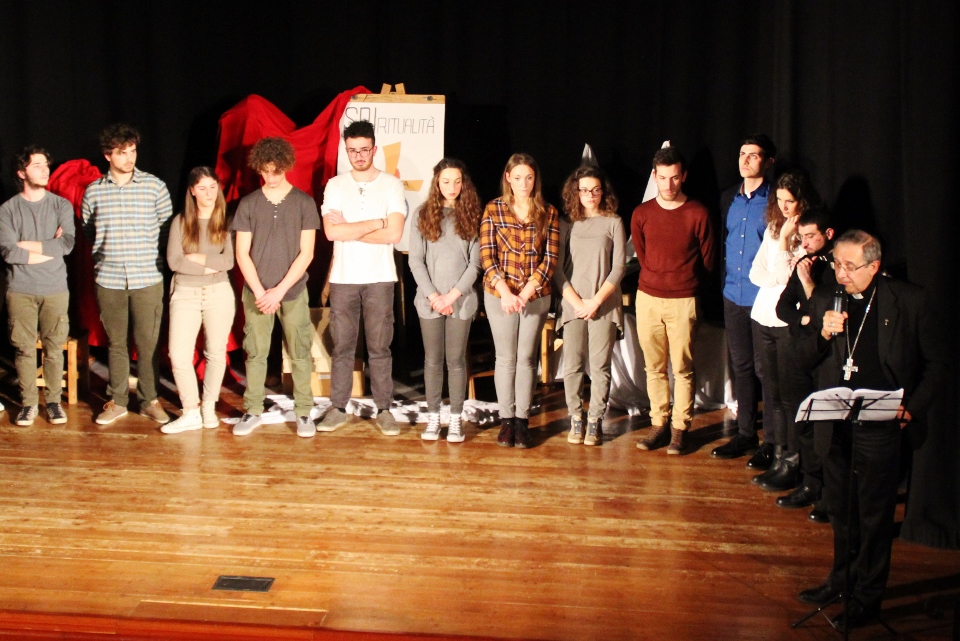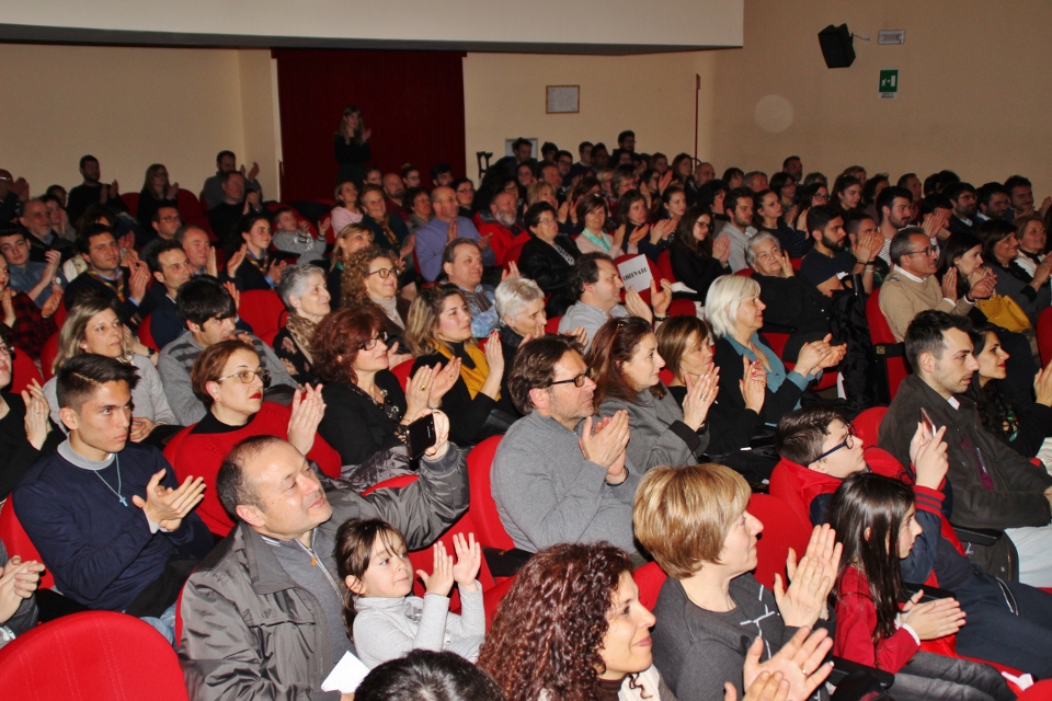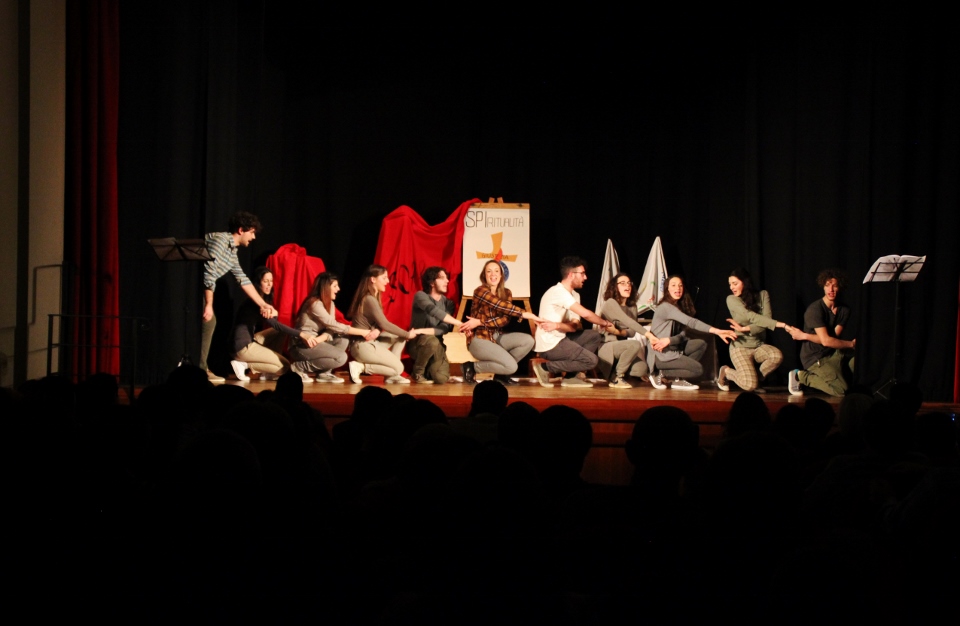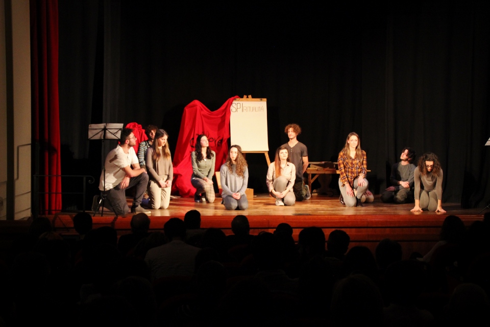 SAN BENEDETTO DEL TRONTO – Al teatro San Filippo Neri, è andato in scena uno spettacolo dal titolo “SoSpiRi” nato dalla collaborazione fra alcuni ragazzi della parrocchia Regina Pacis di Centobuchi e i ragazzi dell’associazione Caleidoscopio, che li hanno assistiti e guidati nella preparazione di un “viaggio” teatrale e spirituale in vista della prossima GMG 2016 che si svolgerà il prossimo luglio a Cracovia, in Polonia.