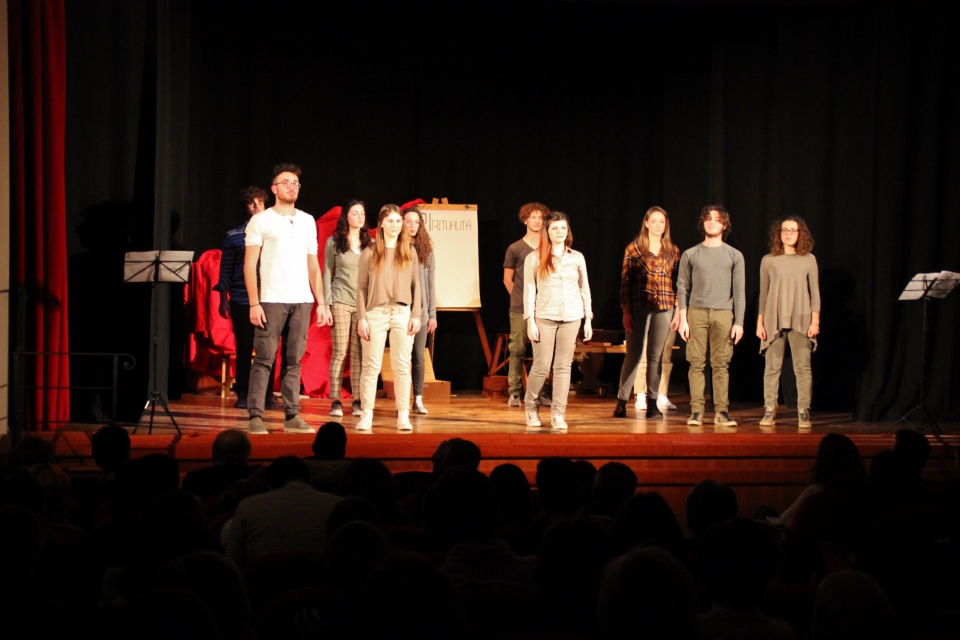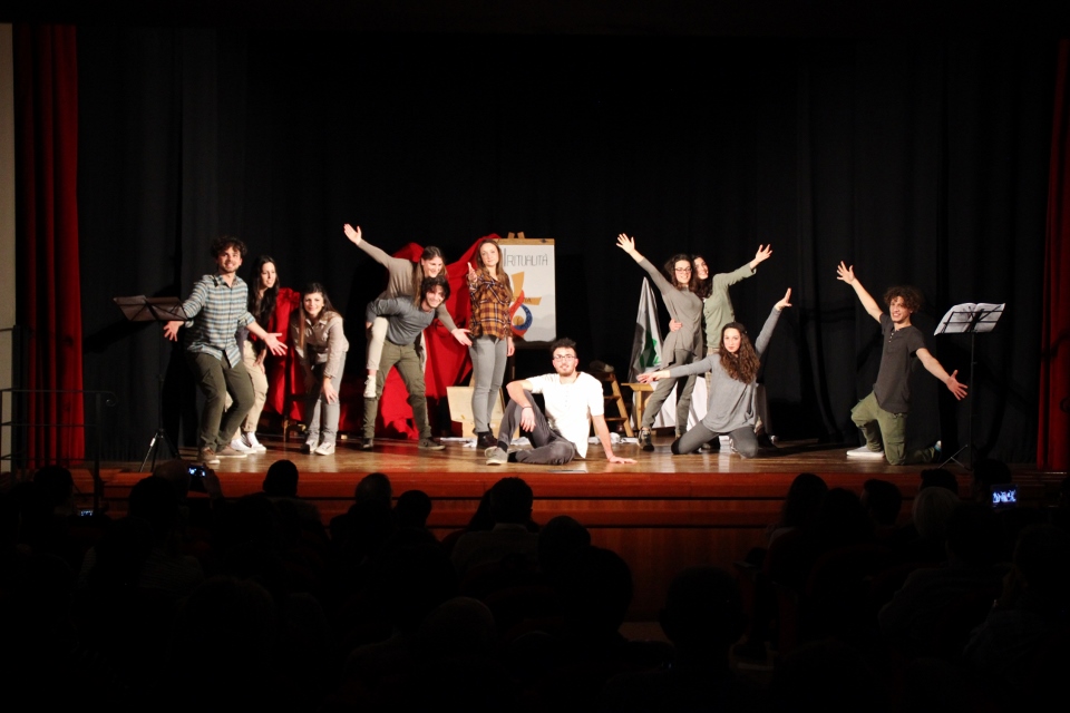 A riferirci tutti i dettagli, i retroscena e i commenti post-spettacolo sono stati Michele, Silvia e Vincenzo (di Caleidoscopio) insieme a Valentina, Mattia, Ester e Alteo, quattro degli 11 ragazzi di Centobuchi protagonisti della rappresentazione.