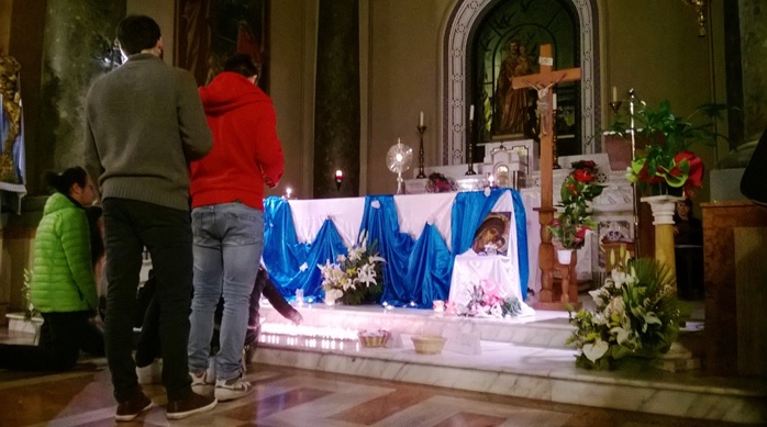 I giovani, circa 30, si sono preparati dal pomeriggio dalle 18.30 con percorsi spirituali proposti da Padre Massimo, hanno vissuto la cena insieme e alle 22 hanno preparato la chiesa di San Giuseppe predisponendo l’altare che viene visto, in queste serate, come grembo che accoglie ogni ragazzo che entra in chiesa. Dopo l’invocazione dello Spirito Santo e la benedizione di ogni coppia di evangelizzatori da parte di Padre Gabriele Lupi, Padre Massimo Vedova e Fra Giuseppe Arlizii (del convento di Pescara) i ragazzi sono partiti alla volta del corso e degli incontri.