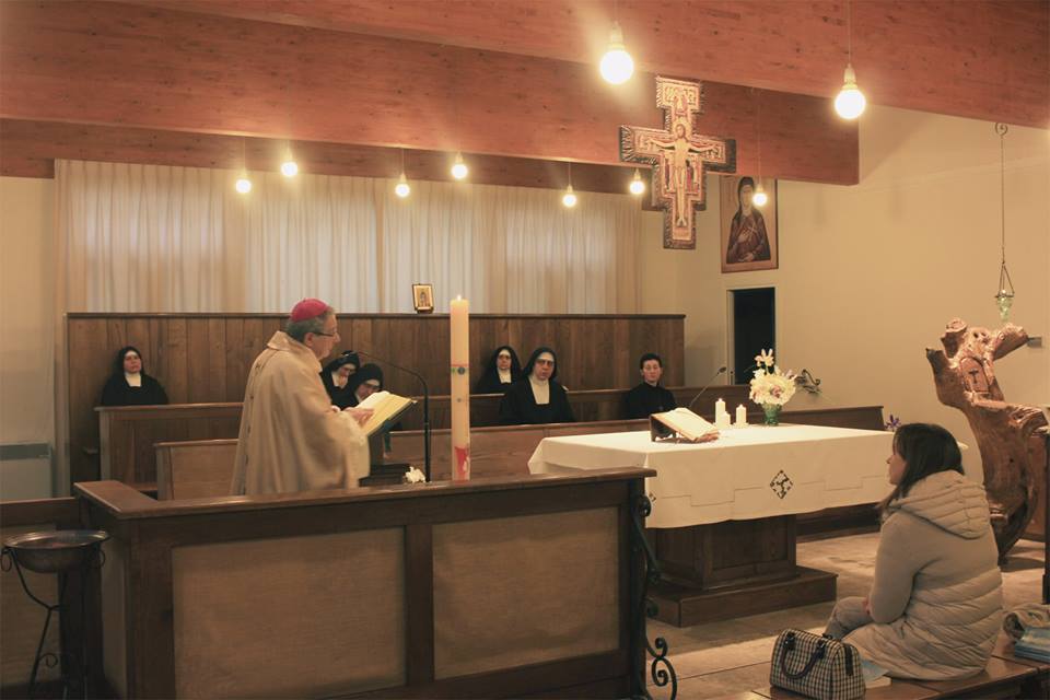 DIOCESI – La celebrazione dell’eucarestia nel primo giovedì del mese presso il monastero Santa Speranza si è svolta ieri pomeriggio, 7 aprile, con un’intenzione particolare: quella di pregare per le vocazioni, nella settimana eucaristica che stiamo vivendo in diocesi.