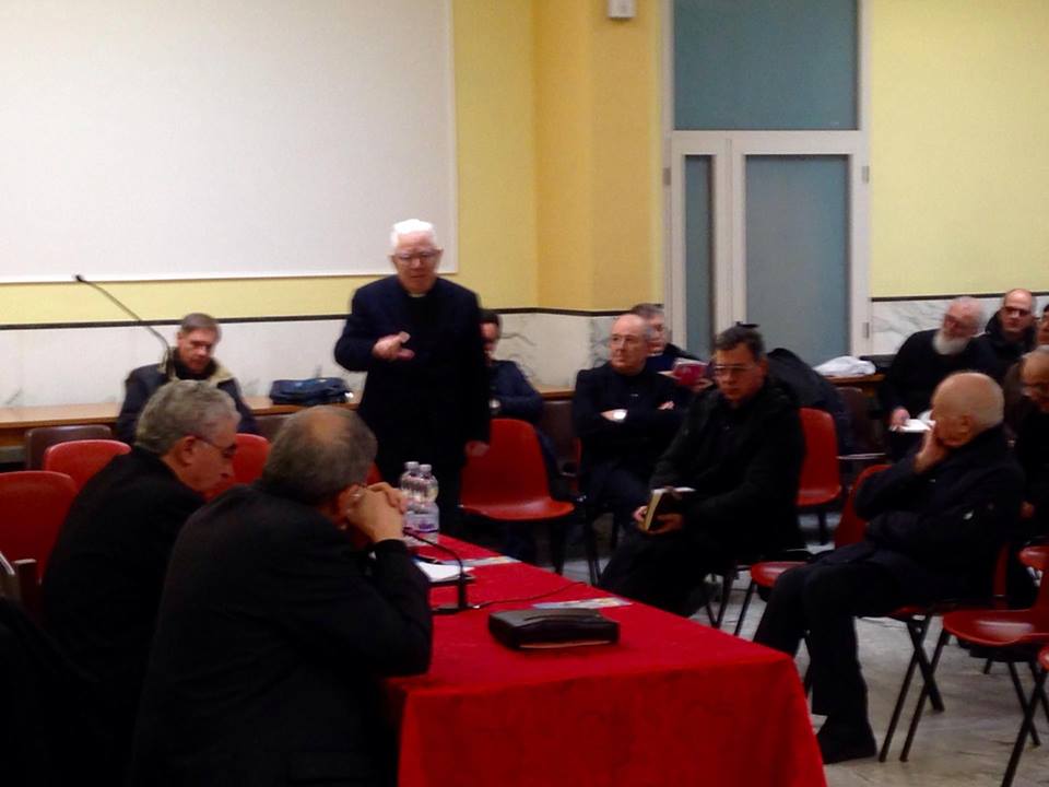 DIOCESI – Ancora una volta, quasi all’inizio di questo mese di aprile, il nostro Clero diocesano è stato chiamato a raccogliersi in Ritiro, come ogni volta, per riflettere e per pregare, insieme al nostro vescovo Carlo, e per vivere alcune ore di Fraternità sacerdotale, che aiuta in maniera semplice e fruttuosa a nutrire le buone relazioni che caratterizzano la vita e l’operato del presbiterio della nostra Chiesa locale. L’occasione e il luogo d’incontro per questo quarto appuntamento nel nuovo anno sono stati offerti dai Padri Sacramentini di San Benedetto del Tronto, presso il cui Santuario, in questi giorni si sta svolgendo la Settimana Eucaristica, giunta alla sua settantatreesima edizione, che ha come titolo “Il Volto di Cristo nelle opere di Misericordia”, in linea con il Giubileo straordinario che stiamo vivendo ormai da quattro mesi. “E’ mio vivo desiderio – scrive Papa Francesco nella Bolla di Indizione dell’Anno Santo della Misericordia – che il popolo cristiano rifletta durante il Giubileo sulle opere di misericordia corporale e spirituale. Sarà un modo per risvegliare la nostra coscienza spesso assopita davanti al dramma della povertà e per entrare sempre di più nel cuore del Vangelo, dove i poveri sono i privilegiati della misericordia divina”. (Misericordiæ Vultus, 15). La giornata dedicata ai Presbiteri infatti ha avuto come tematica “Eucaristia e Dono di sé”, ed è stata animata da Padre Fiorenzo Salvi, religioso sacramentino, che insieme a Padre Alberto Occhioni e Padre Antonio Genziani, ha curato l’animazione dei diversi incontri e delle numerose celebrazioni. Scriveva il Vescovo nell’introdurre queste giornate: “Auspico che sia una settimana feconda di grazie, vissuta nell’adorazione e nella meditazione. La meditazione eucaristica ci aiuti a diventare operatori concreti di misericordia corporale e spirituale, consapevoli che il culto eucaristico senza le opere è come contemplare un cibo nutriente senza assumerlo”. Ecco perché i nostri sacerdoti hanno pregato insieme l’Ora terza, hanno ascoltato la riflessione loro offerta, hanno lasciato uno spazio di Adorazione eucaristica personale e silenziosa, e hanno condiviso le loro esperienze e la stessa mensa fraterna, preparata con cura, come ogni anno, dalla Comunità sacramentina del Santuario dell’Adorazione.