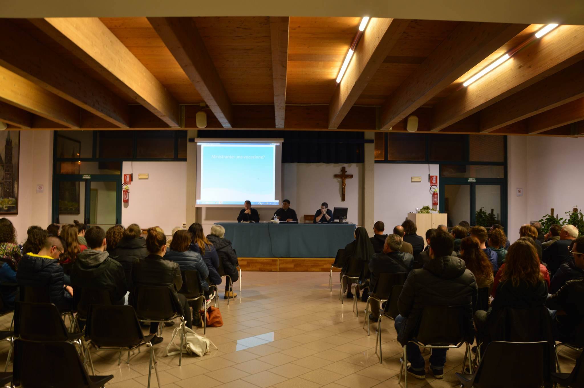 Don Roberto Traini ha poi approfondito l’aspetto vocazionale: “Ministrante: una vocazione?”. La vocazione e’ per tutti coloro che hanno ricevuto il Battesimo, tutto sta capire come essa si incarna nella nostra vita: sacerdozio, matrimonio, servizio alla propria comunità. Seguire il Signore è una chiamata alla gioia: “Essere ministrante mi da una grandissima gioia …”. Lo stile da seguire è quello del servizio, del Signore che lava i piedi ai discepoli, e della generosità, del ragazzo che dà generosamente i suoi cinque pani e due pesci per sfamare la folla.