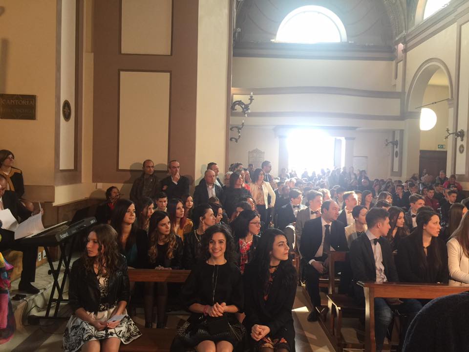 Fino a questo avvenimento: 48 ragazzi che ricevono in dono lo Spirito Santo, per mano del loro vescovo, mons. Bresciani, di fronte ai loro familiari e alla comunità di Cupra Marittima.