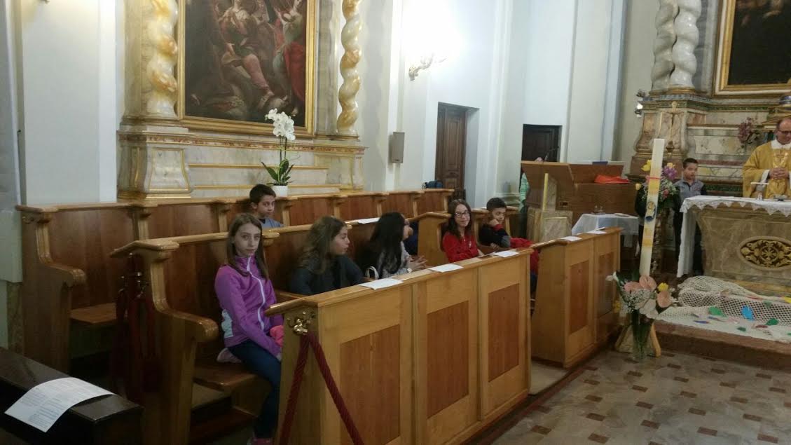 ACQUAVIVA PICENA – Domenica 10 aprile i bambini che a maggio riceveranno il Sacramento della Prima Comunione, insieme ai loro genitori, al parroco don Alfredo e alla loro educatrice Arianna, hanno vissuto una giornata di ritiro a Santa Vittoria in Matenano, nel Monastero di santa Caterina delle suore benedettine. Durante la giornata molti sono stati i momenti significativi, a cominciare dall’attività che i bambini hanno svolto con i loro genitori, chiamata Messa a raggi X, dove sono stati invitati ad analizzare tutte le parti della Messa nell’ordine. A seguire si è svolta un’attività rivolta solo ai bambini, dove prendendo spunto dal Vangelo di quella domenica, sono stati realizzati dei pesci da attaccare alla rete. Don Alfredo poi, ha presieduto la celebrazione Eucaristica. Al termine tutti si sono riuniti nel salone per condividere insieme il pranzo. Nel pomeriggio si è svolto l’incontro con la superiora, madre Ida. Tutti molti felici a tarda sera sono ripartiti per Acquaviva.