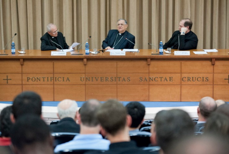 Incontrando gli studenti e i docenti della Pontificia Università della Santa Croce, presso l’Aula Magna Giovanni Paolo II del medesimo ateneo, il Patriarca è stato introdotto dal saluto e dalla presentazione di mons. Luis Romera e del prof. Pablo Gefaell, rispettivamente rettore e vicerettore accademico.