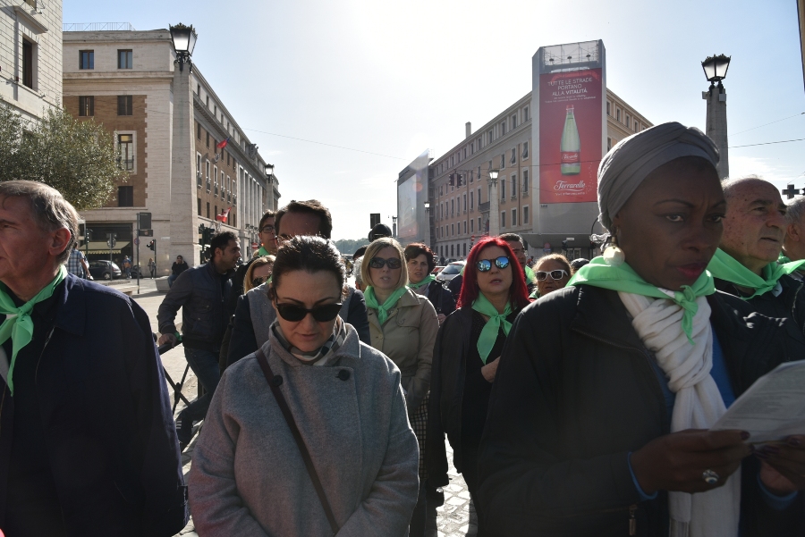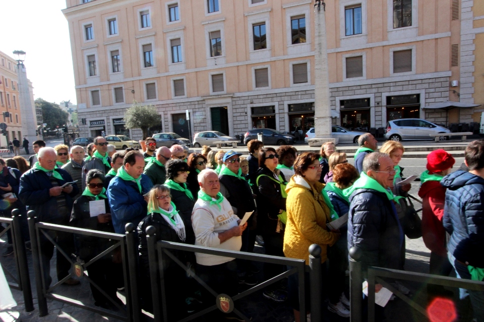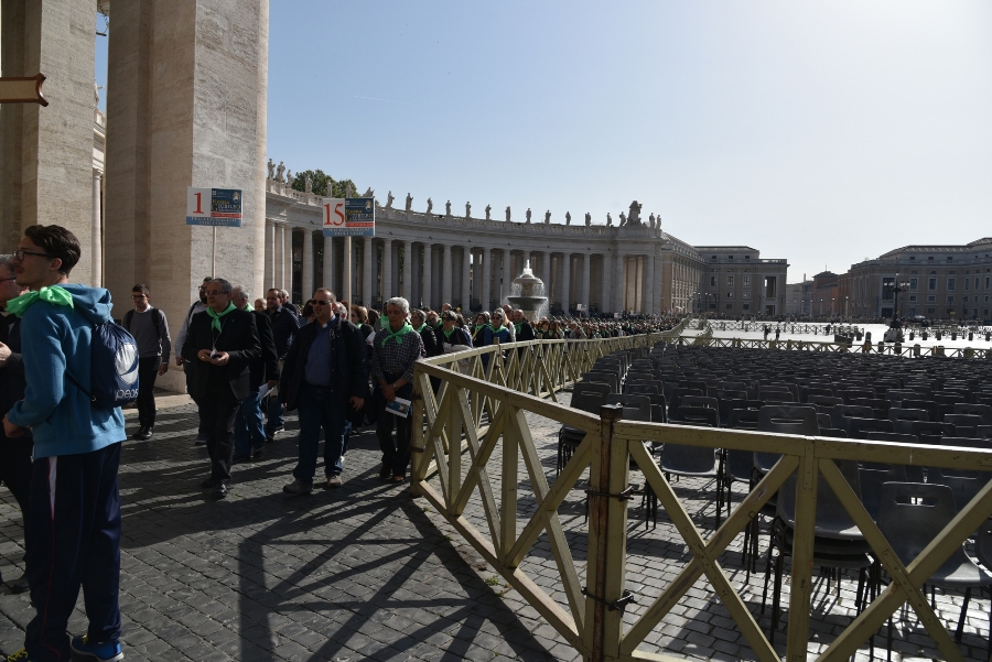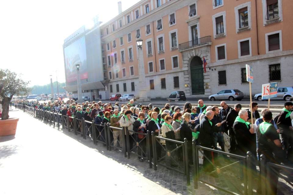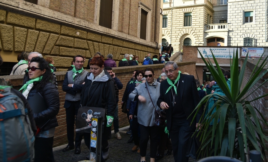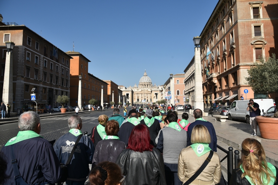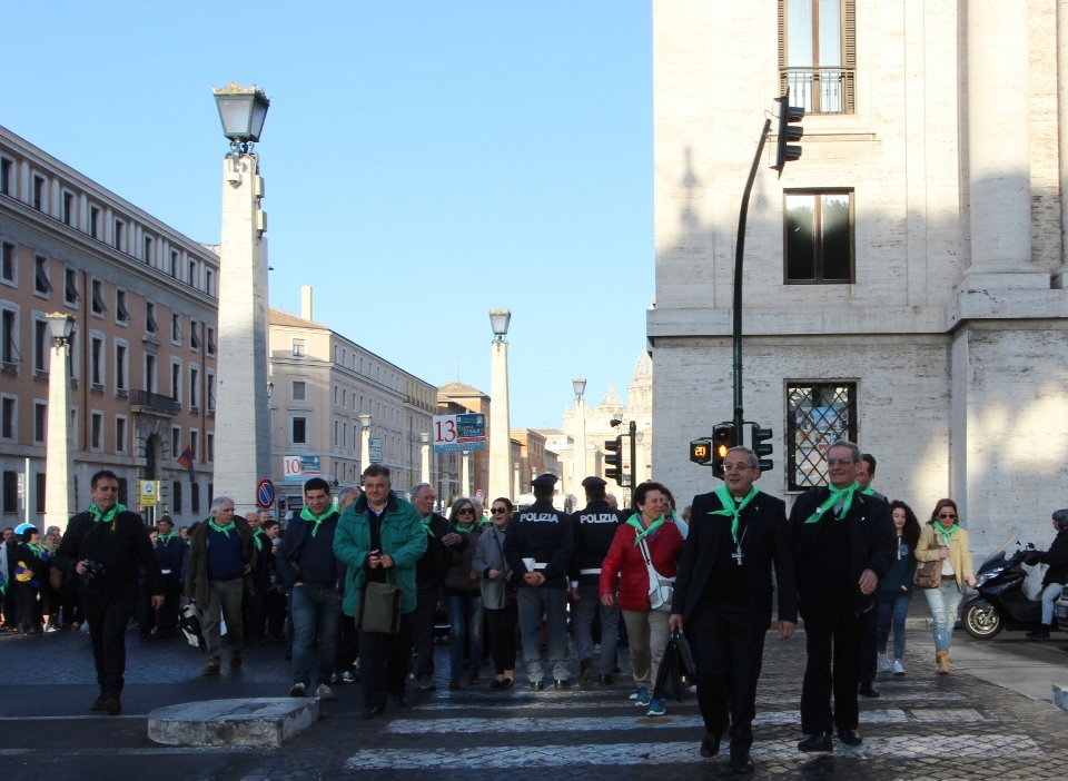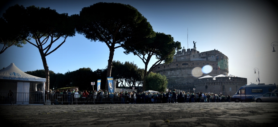 Il vasto gruppo si è ritrovato di buon mattino davanti a Castel Sant’Angelo per poi procedere lungo via della Conciliazione dentro un apposito percorso realizzato in occasione dell’ anno del Giubileo.