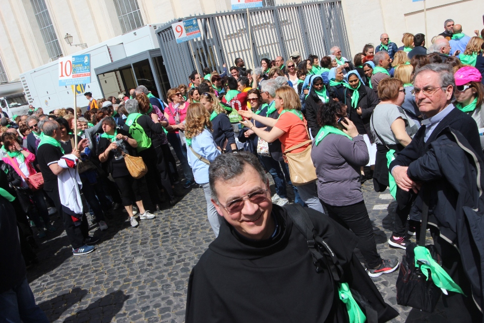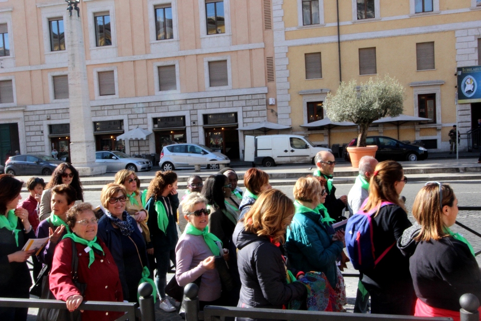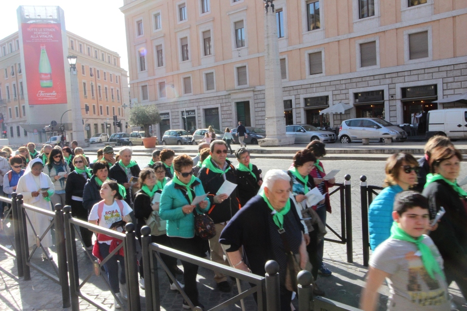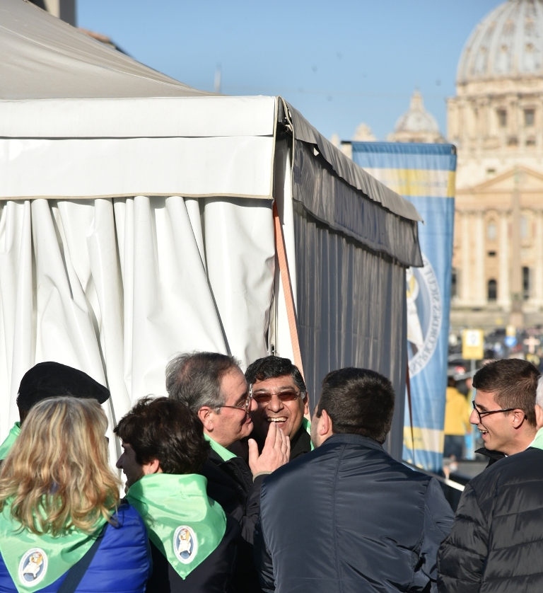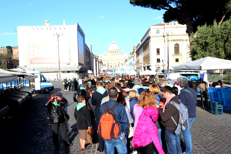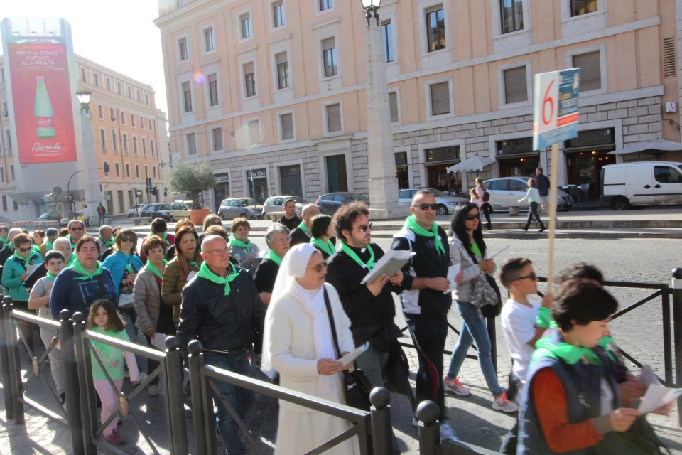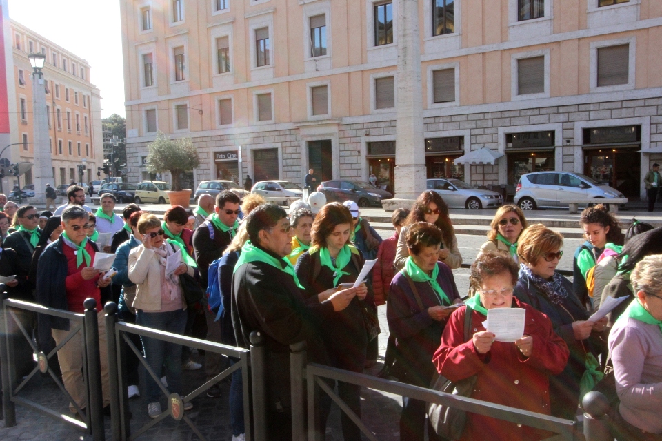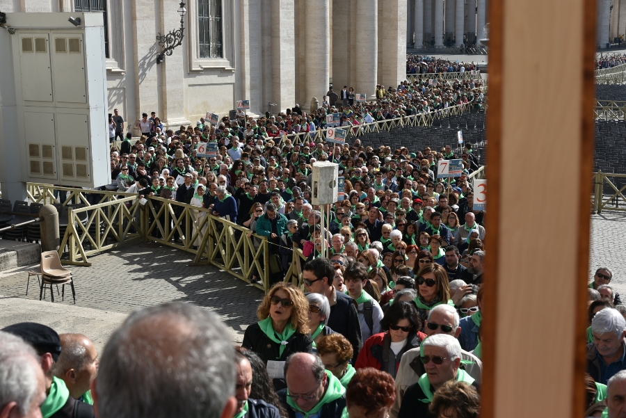 Il vasto gruppo si è ritrovato di buon mattino davanti a Castel Sant’Angelo per poi procedere lungo via della Conciliazione dentro un apposito percorso realizzato in occasione dell’ anno del Giubileo.